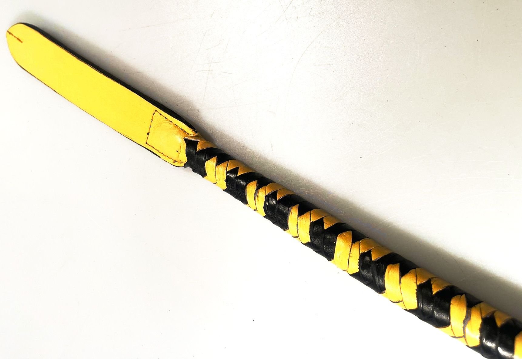 Kleiner weicher Flogger aus Rindsleder in schwarz-gelb