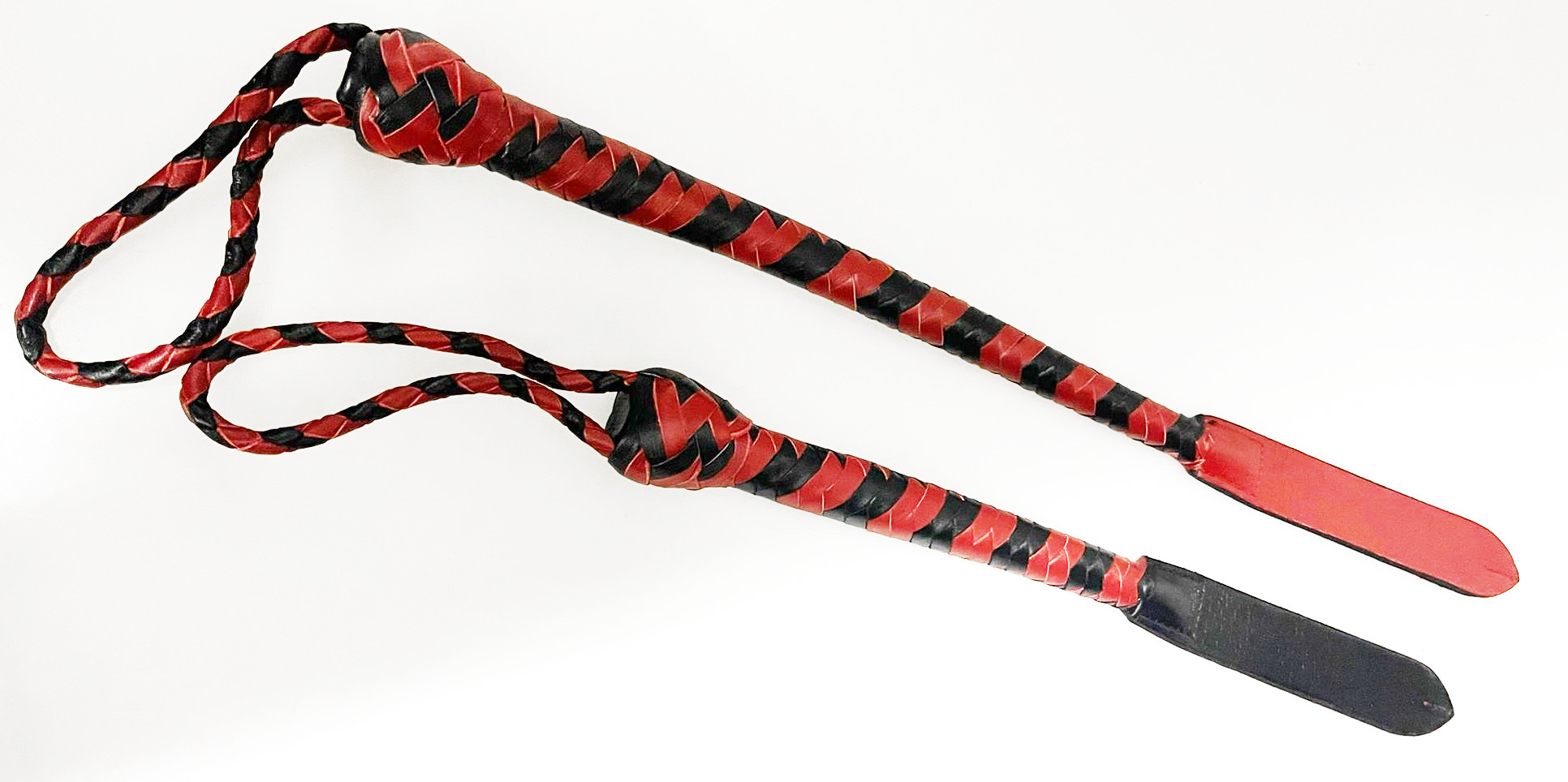 Kurzer Kantschu - Hochwertige Lederpeitsche mit Klatsche 47cm RedBlack
