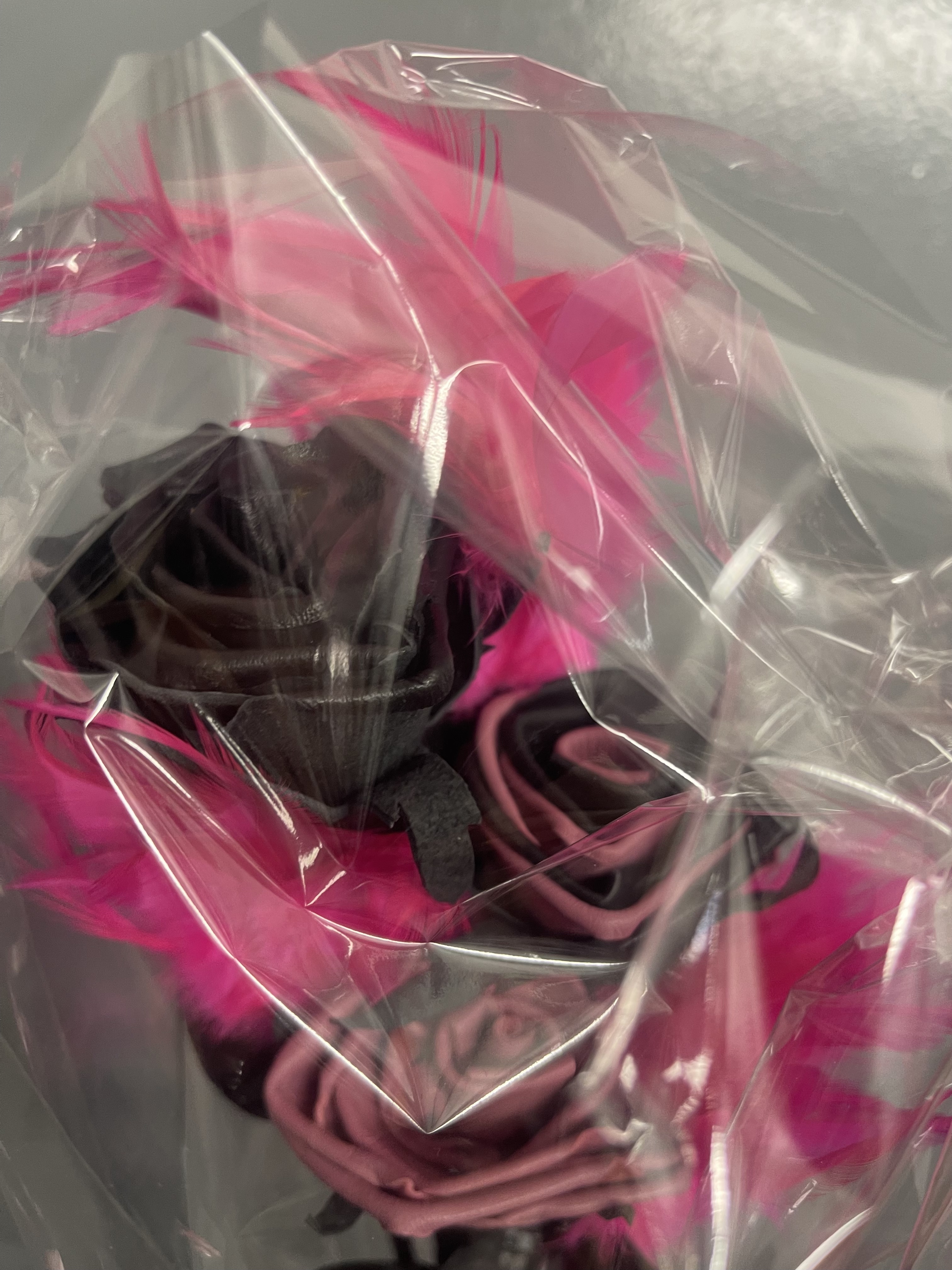 schwarz, altrosa und schwarz/rosa - 3 Stück mit Federn