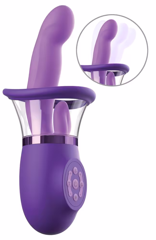 Der Ultimate Pleasure Pro Plus von Fantasy For Her vereint einen G-Punkt-Vibrator mit einer Vulva-Saugschale und einer Klitoris-Vibro-Zunge in einem handlichen Toy. Perfekt, um gleichzeitig und vollumfänglich innen UND außen zu stimulieren. Für tiefgehende Intensiv-Orgasmen!