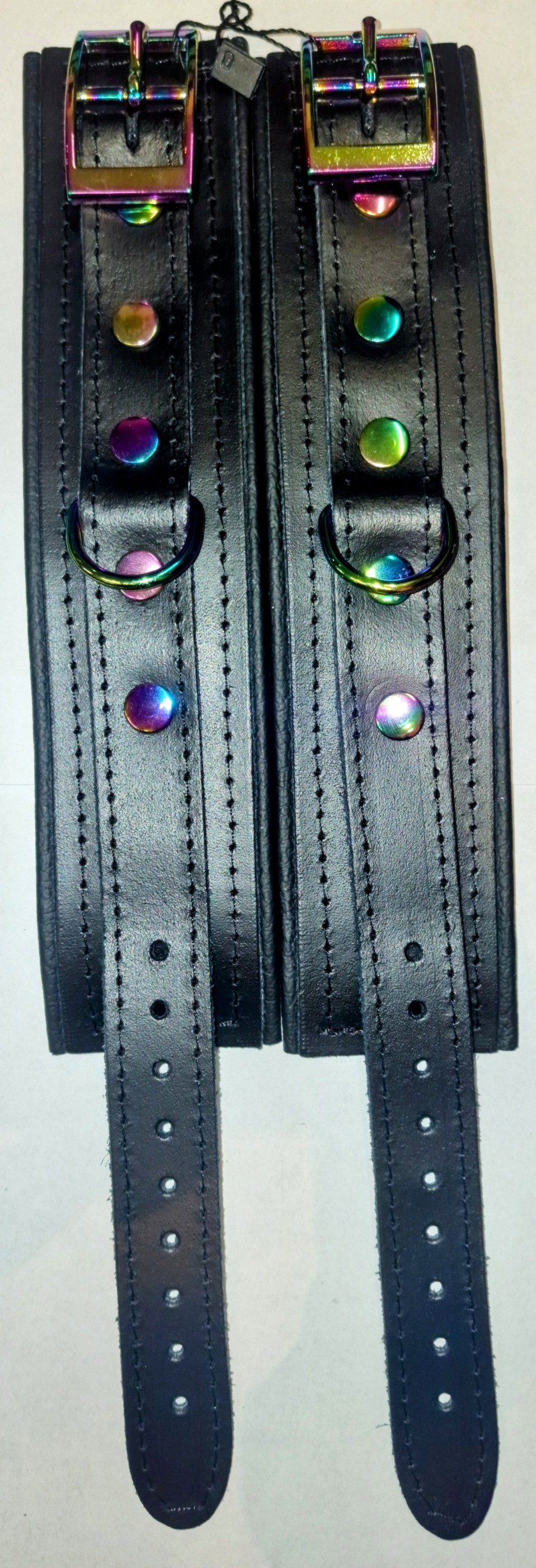 Diese einzigartige Serie besticht durch faszinierende Regenbogen-/Holo-Metallelemente, die jedes Detail zum Highlight machen. Die Fesseln sind aus besonders weichem Leder gefertigt, mit umgenähten Kanten für höchsten Tragekomfort und eine edle Optik.