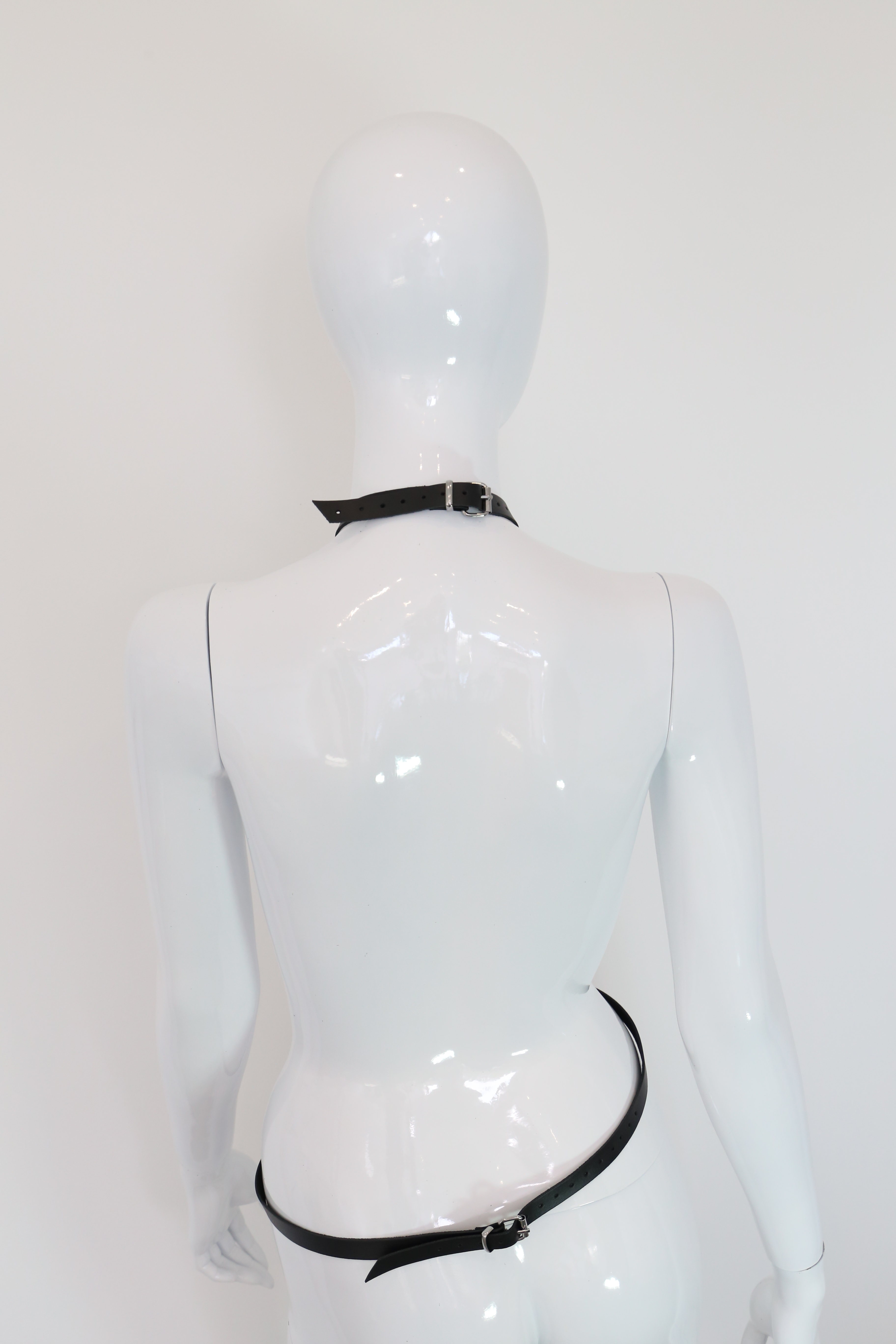 Body Frau mit schmalen Lederriemen.