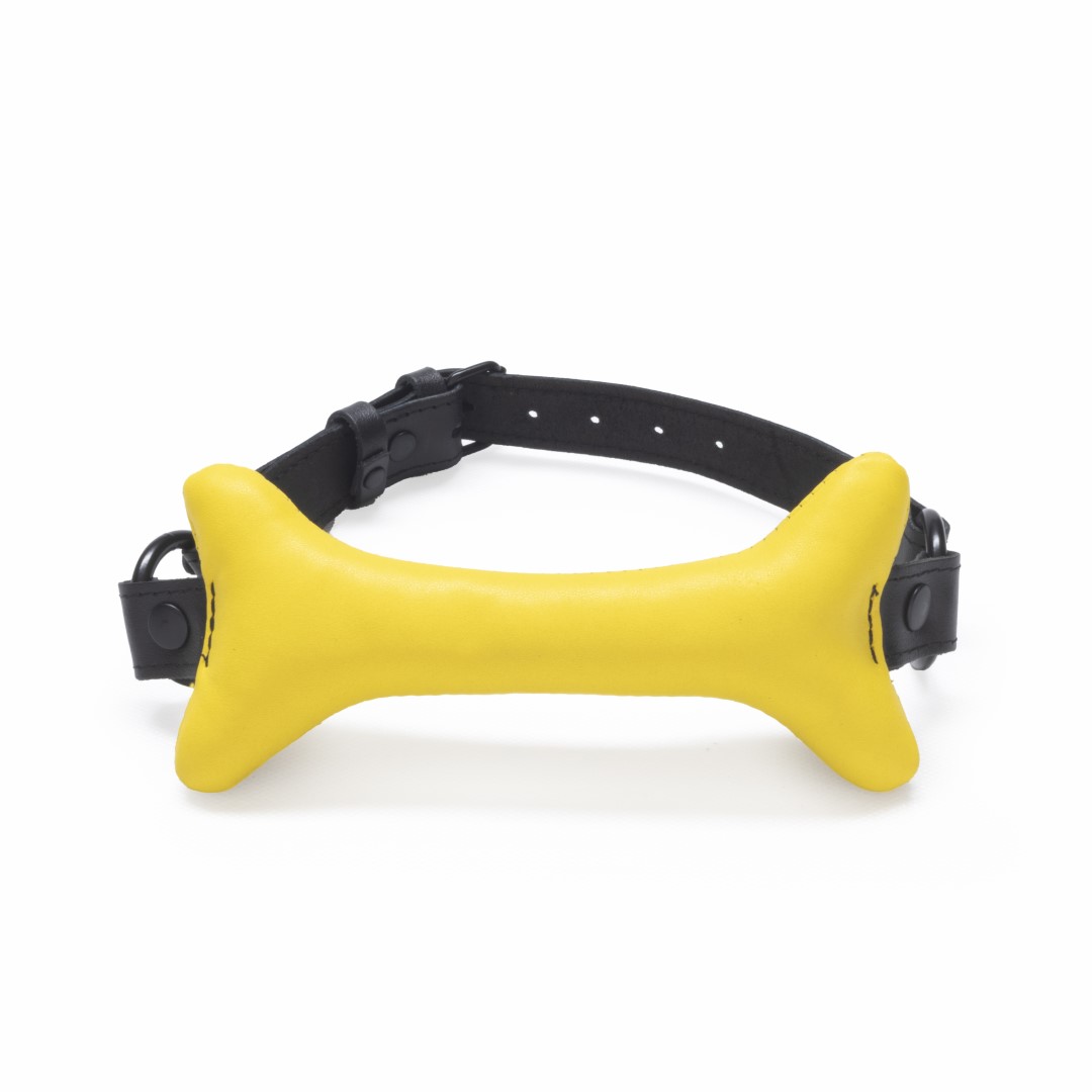 Produktinformationen "Doggy Leder Knochen Knebel Gelb"