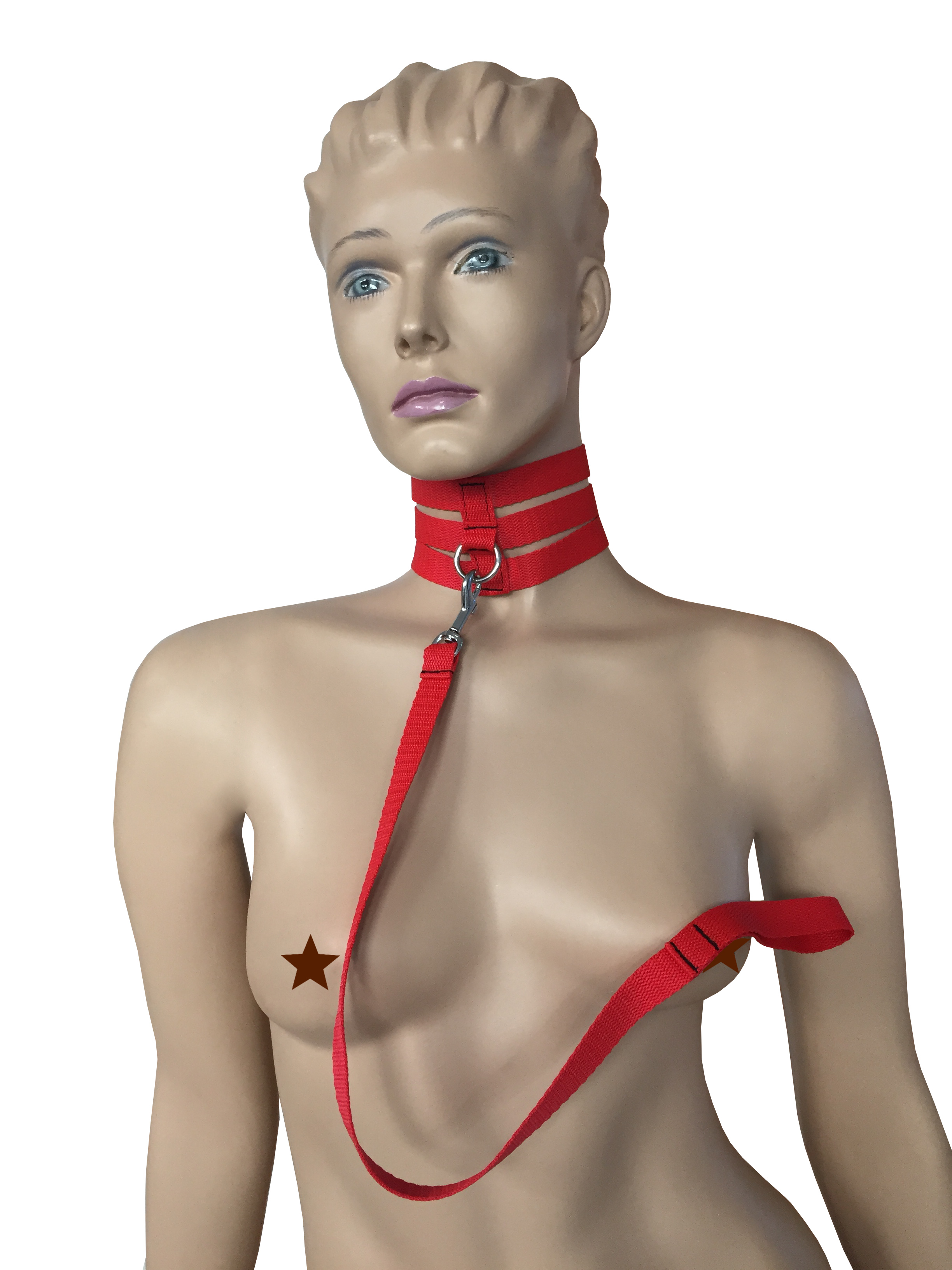 Halsfessel mit Ketten, Klammern und Penis Ringen