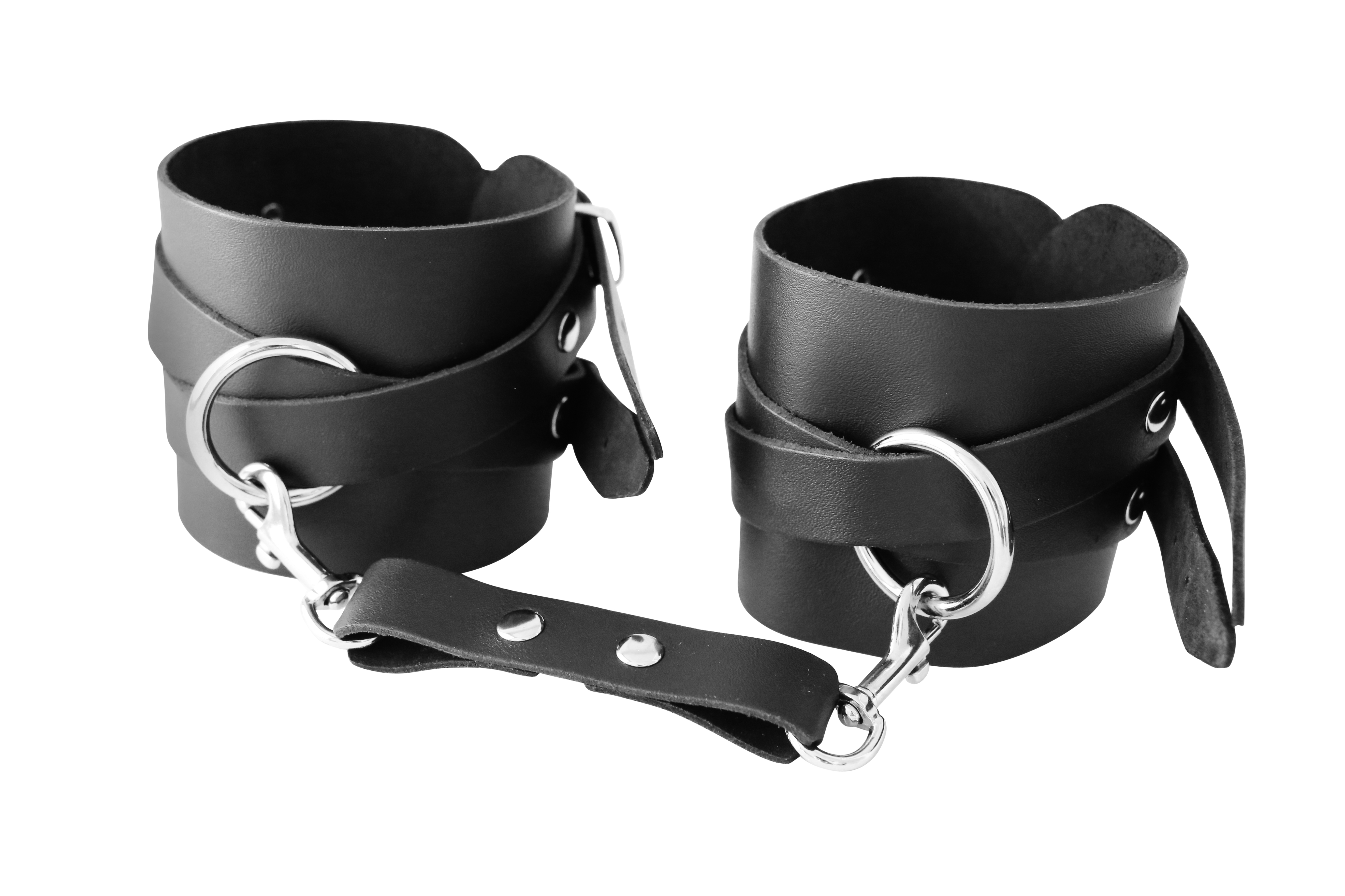Fußfessel aus Leder mit Doppelverschluss und Verbidungsgurt (20 cm lang)
