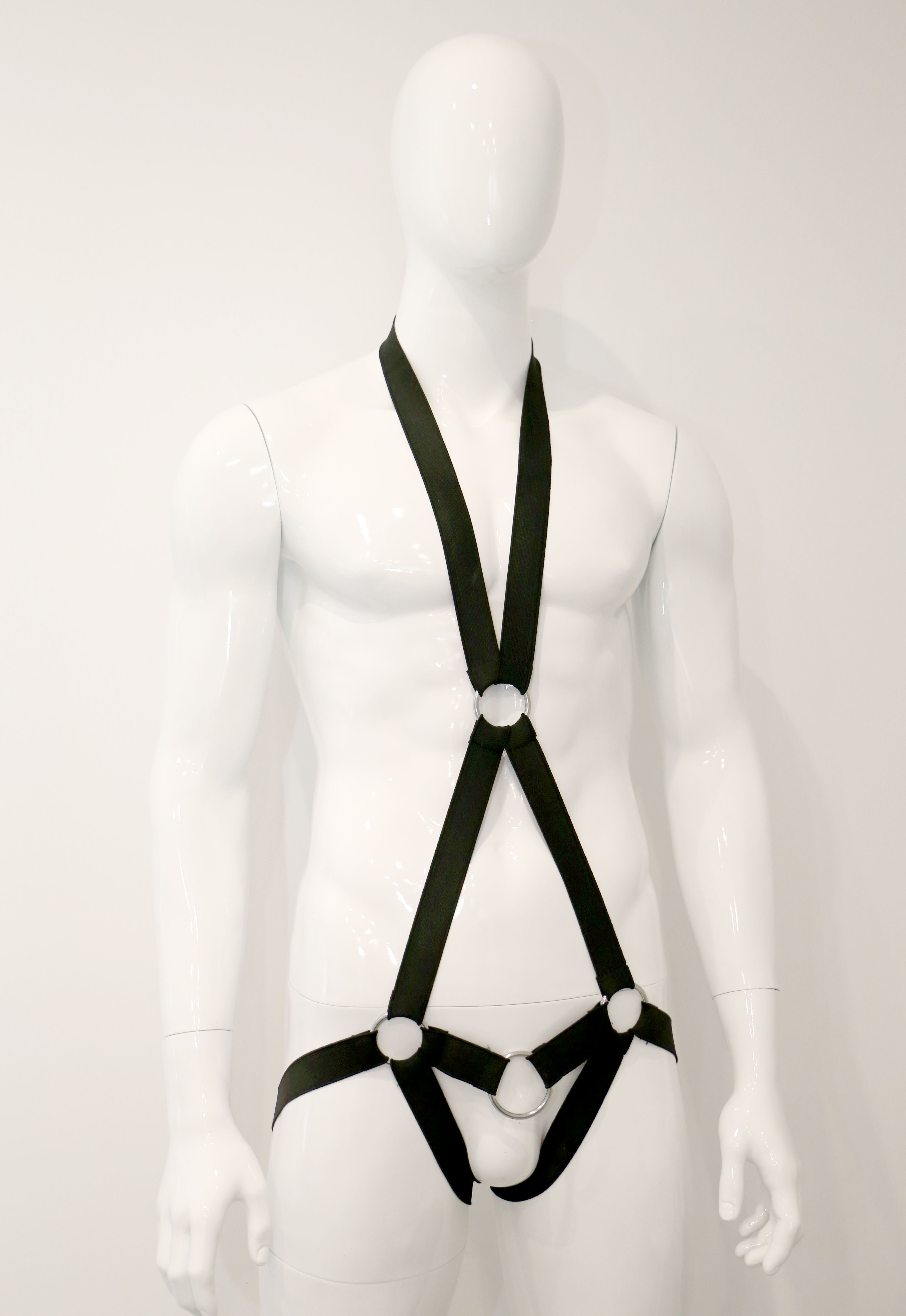 Harnes aus elastischen Gummibändern mit Penis Hoden Ring Ø ca. 50 mm