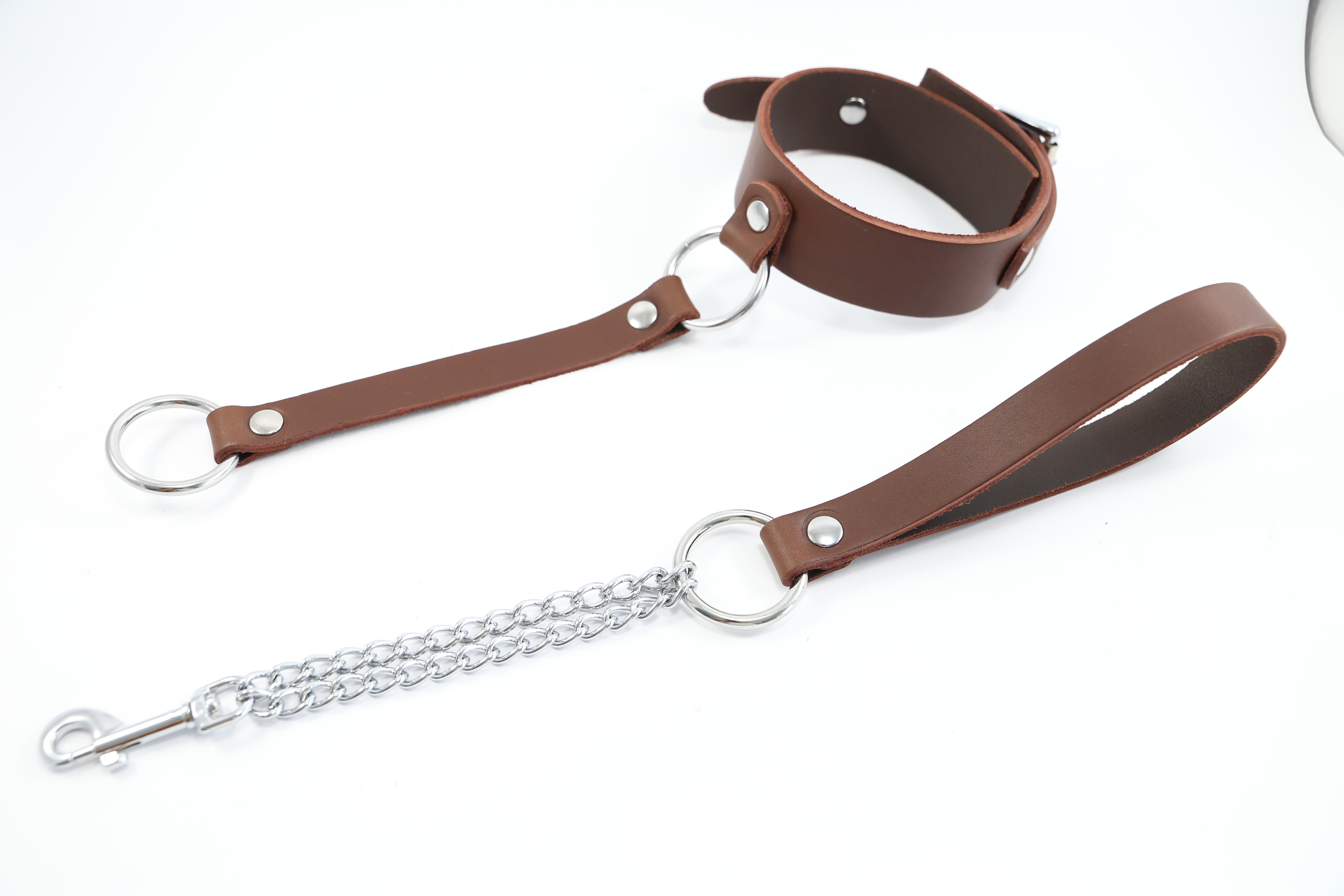 Halsband aus Leder mit integrierter Leine - abnehmbar