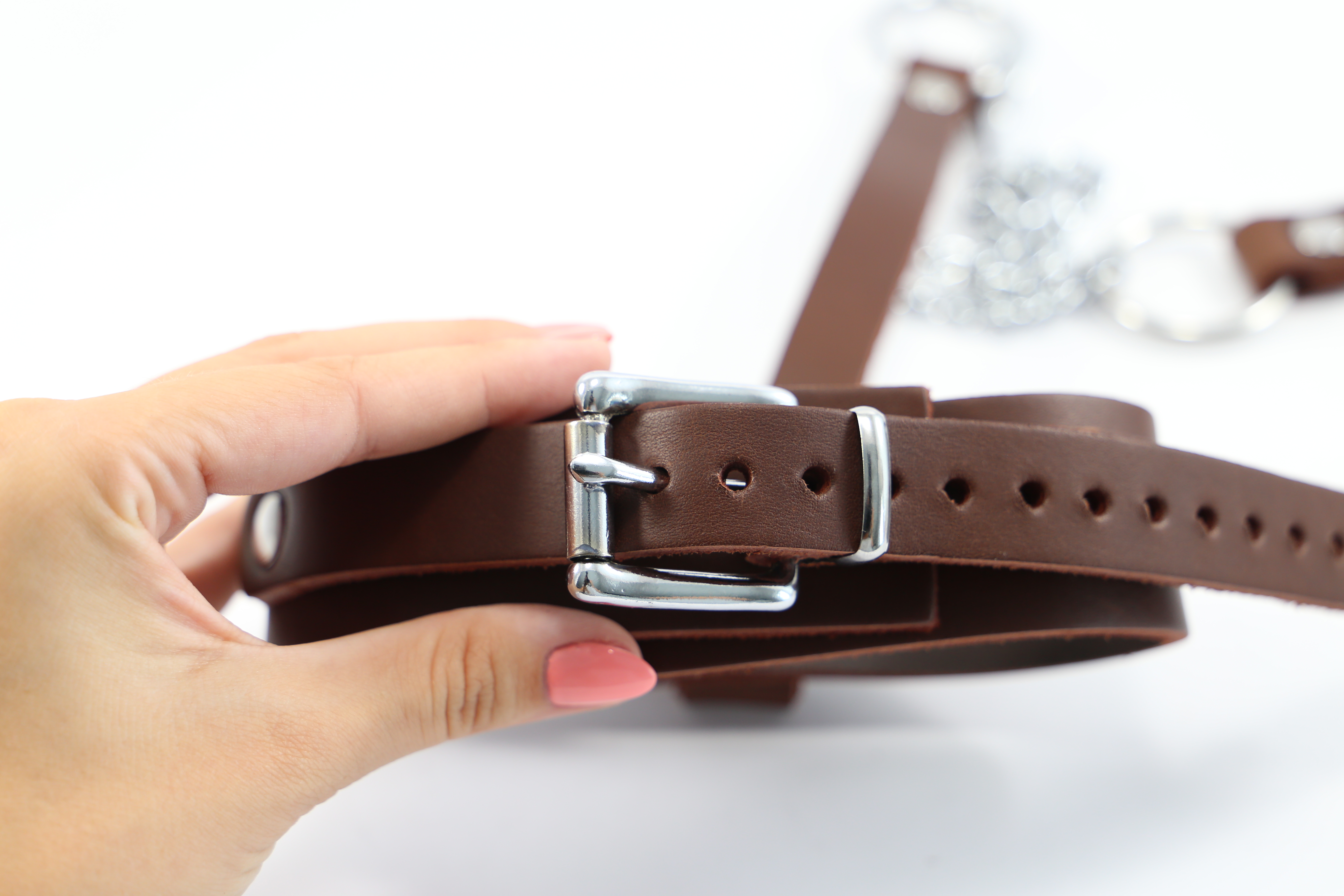 LEDER FESSELNDES - Hogtie 3-Straps Leder mit Nieten und Karabiner