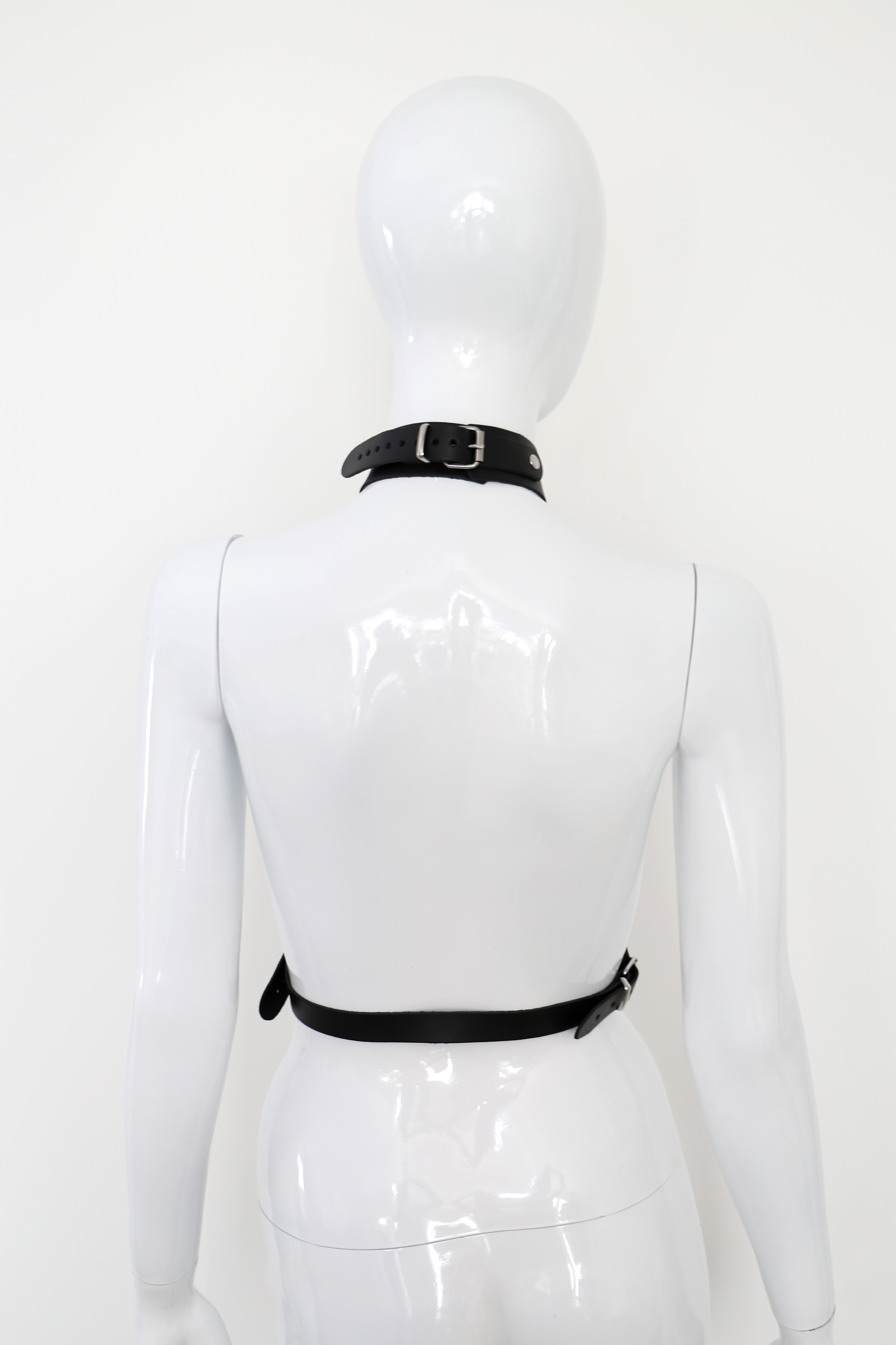 Das Leder Halsband und das Unterteil (das unter der Brust sitzt) sind miteinander verbunden