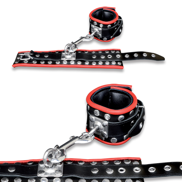 Leder Fesselset Schwarz mit dicker Kette und Karabinern