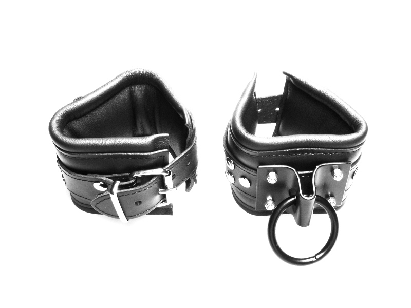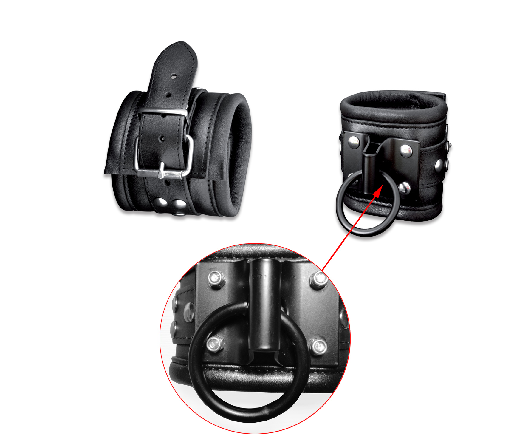 Leder Fesselset schwarz mit großen D-Ringen S-M