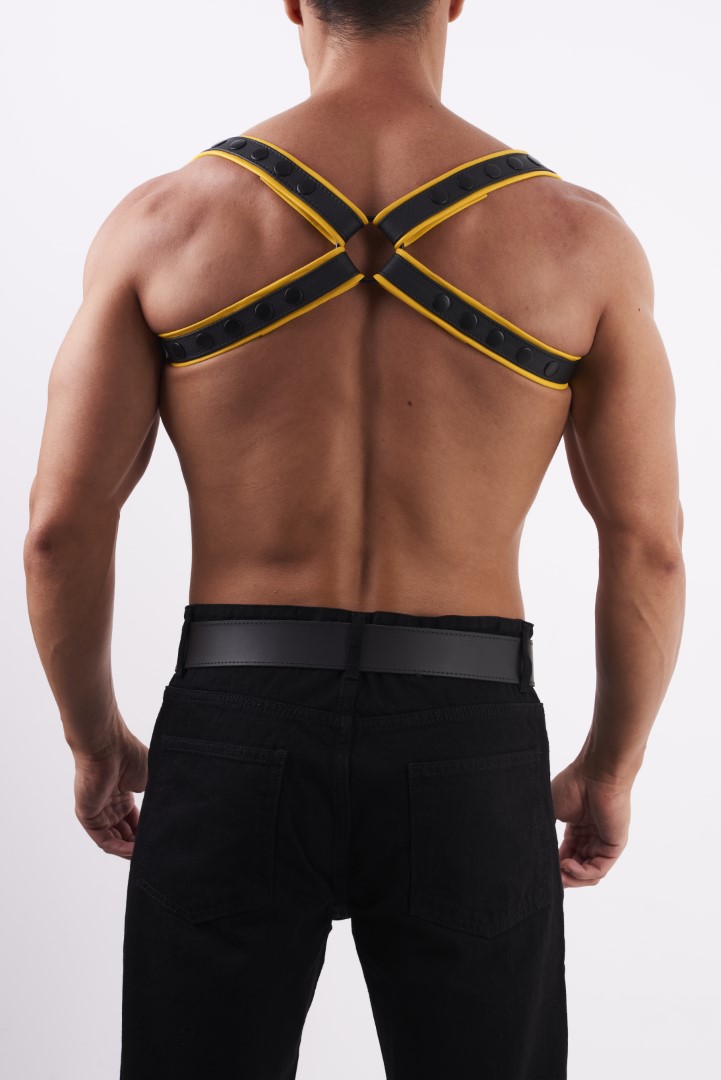 HighQuality - Soft Leder Schulter Harness Schwarz/Gelb
