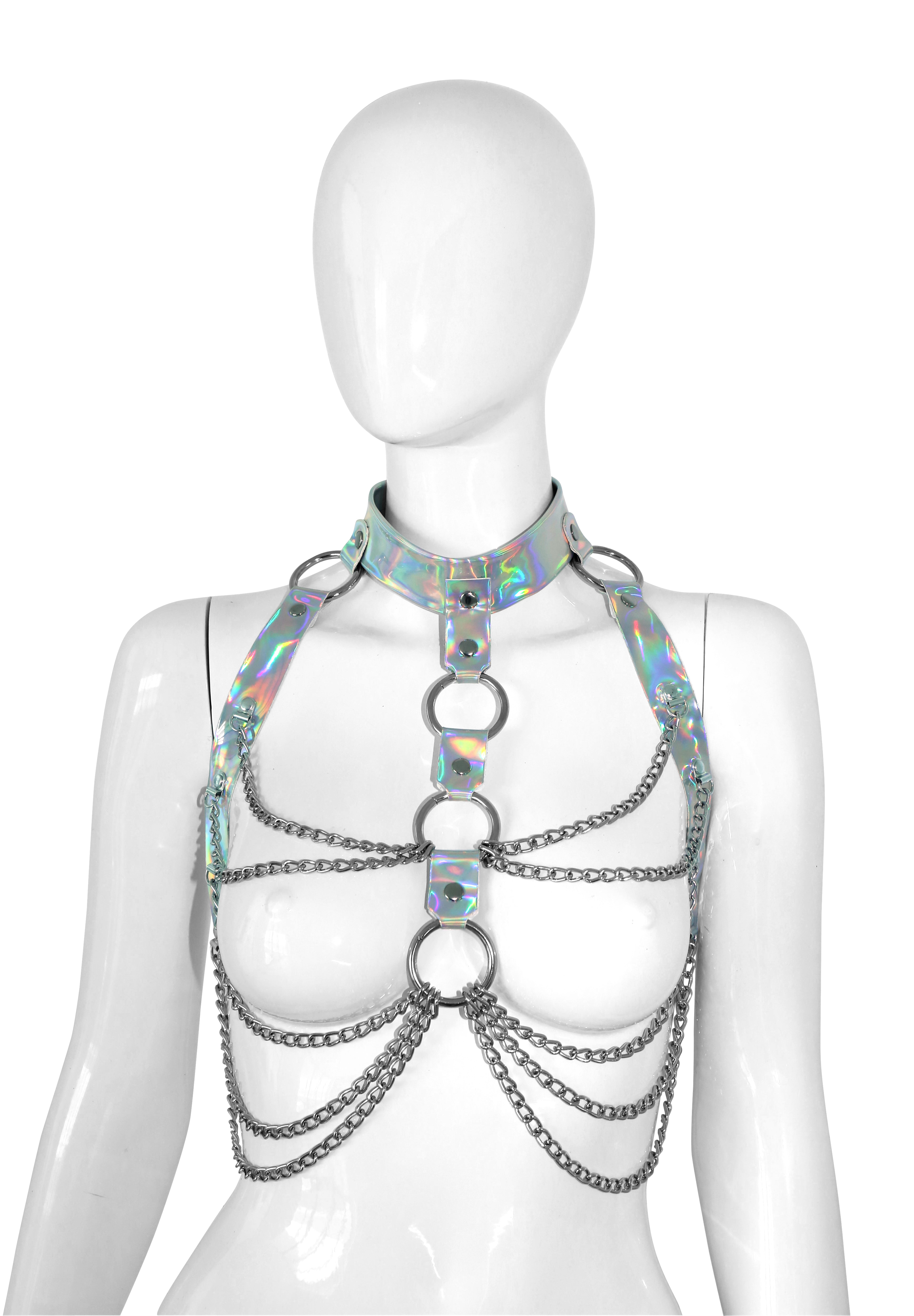 BH aus PVC-Material in holografischer Farbe und Ketten