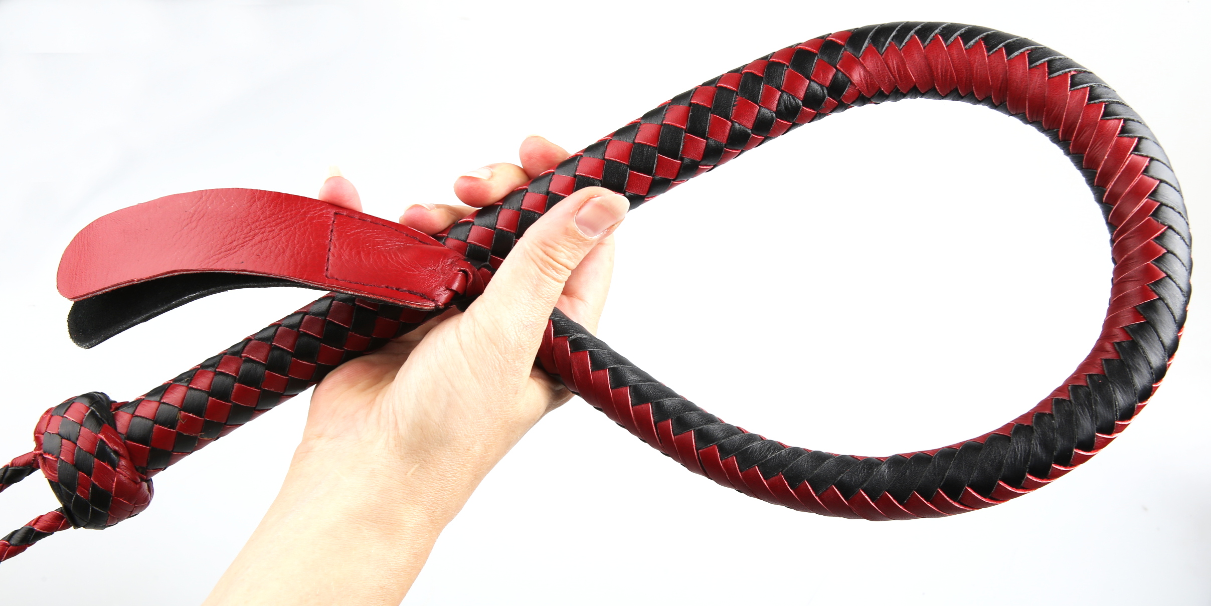 Produktinformationen "Kantschu redblack - Single Tail Whip - mit Klatsche 90cm Rot/Schwarz"