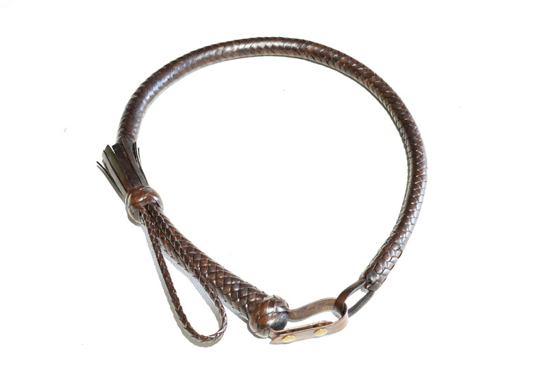 Die Peitsche ist vollständig flexibel und so angepasst, dass sie um die Taille getragen werden kann.