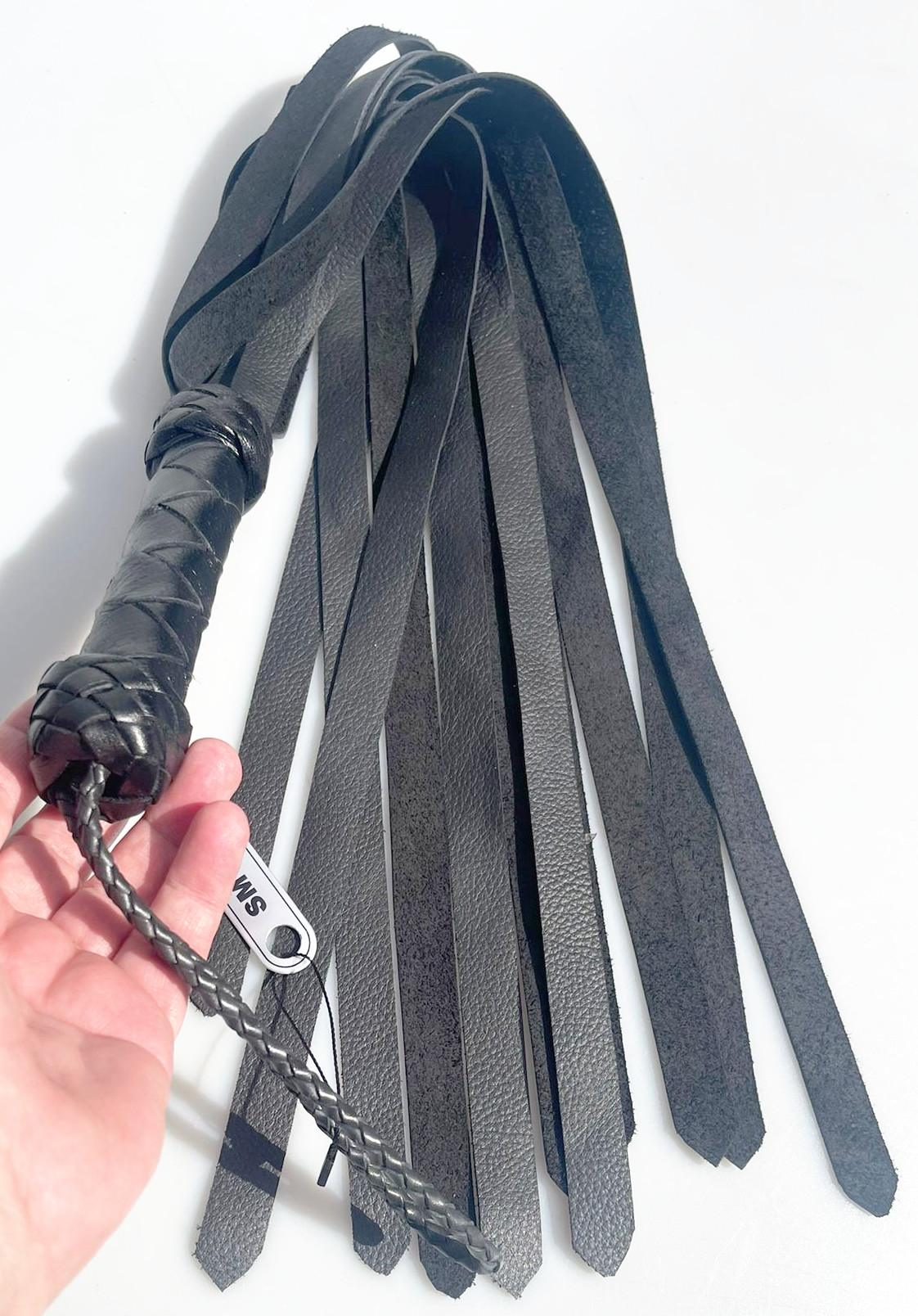 Produktinformationen "Langer Flogger - Schwarz aus Rindsleder"