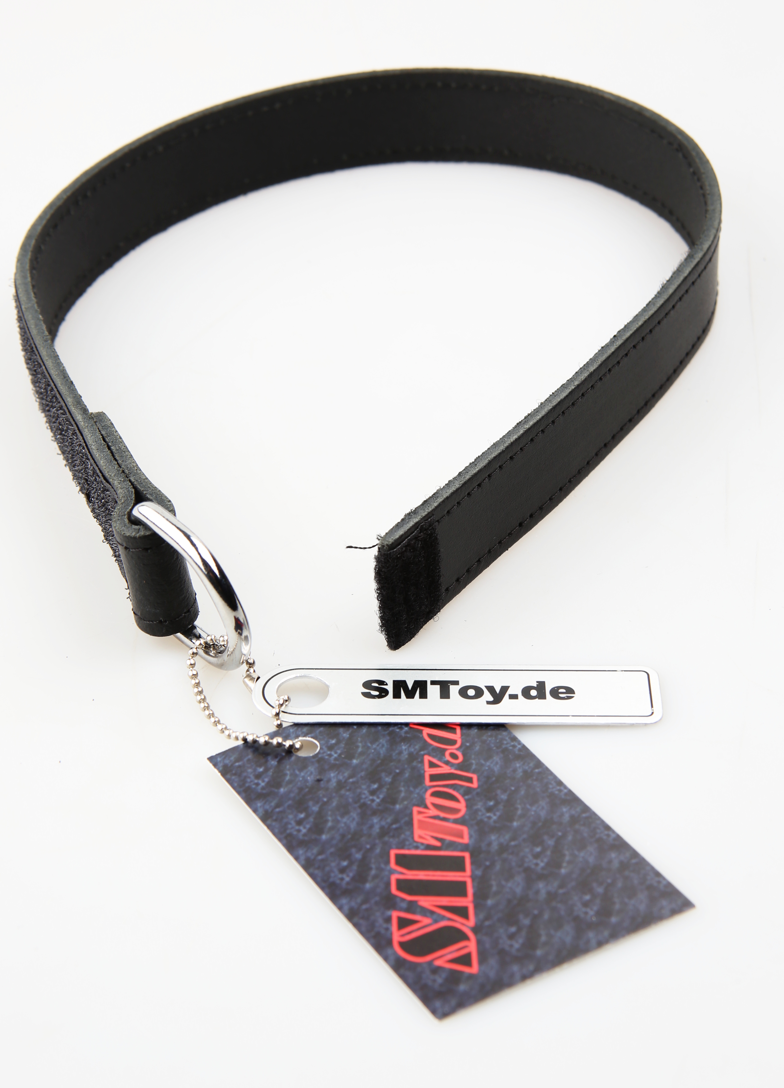 Choker - Halsband der O in Schwarz - echtes Leder mit grossem Ring - Grösse L