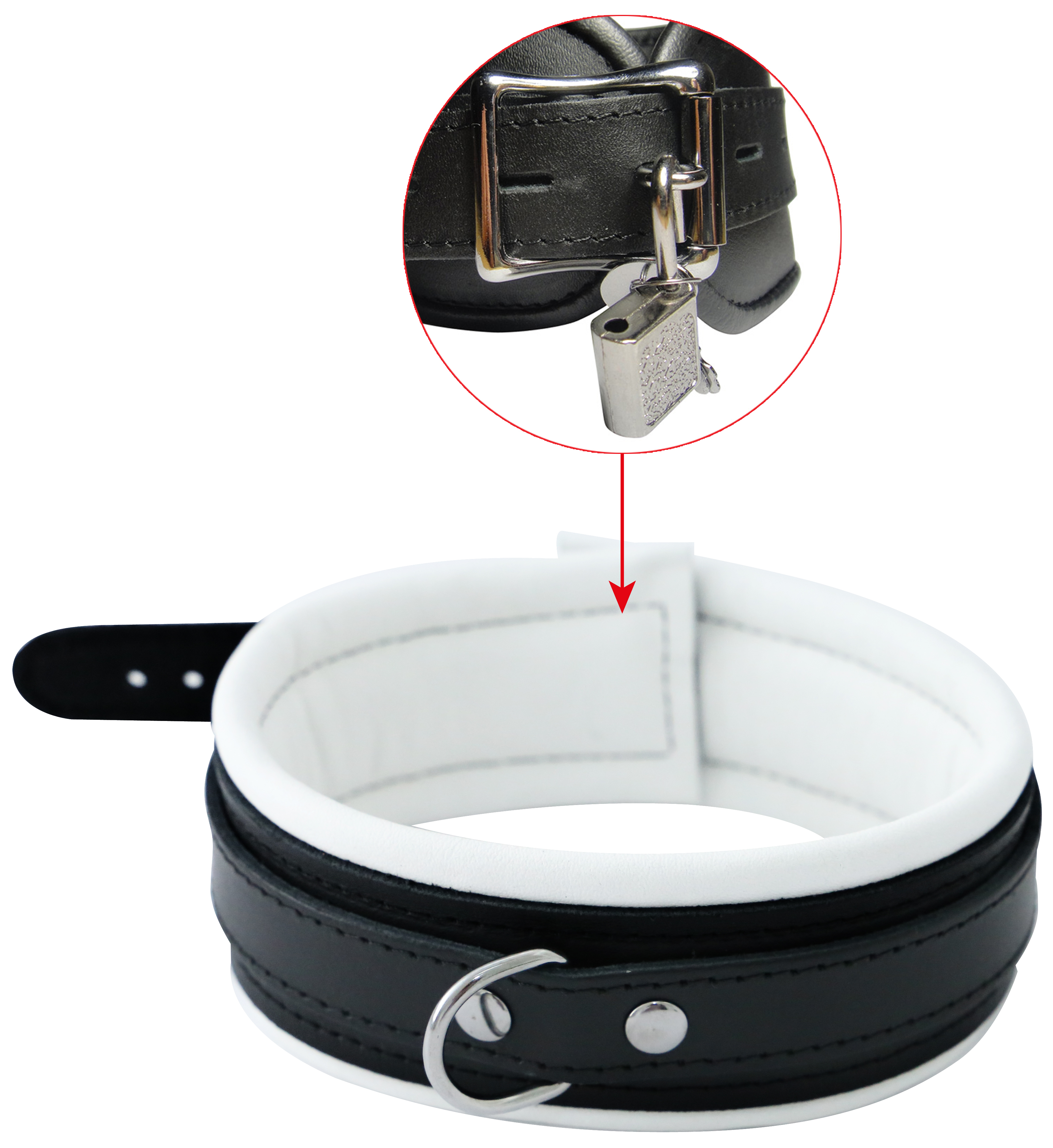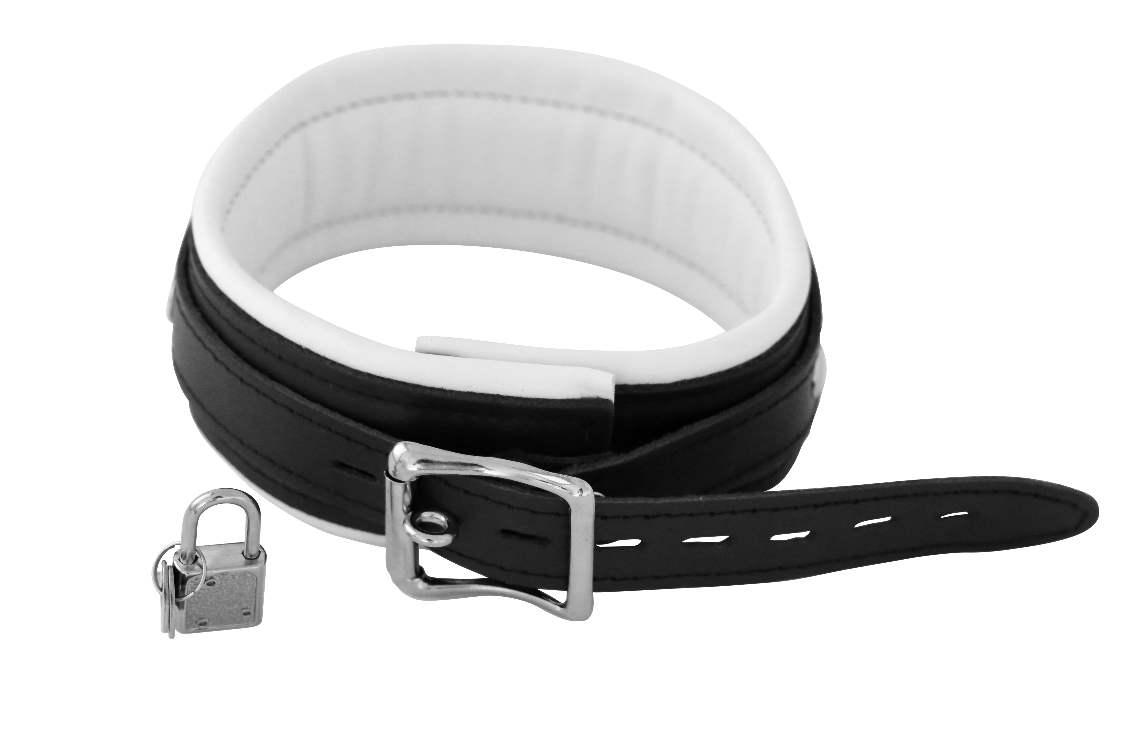 Leder Halsfessel weiß ca. 5 cm breit gepolstert abschließbar.