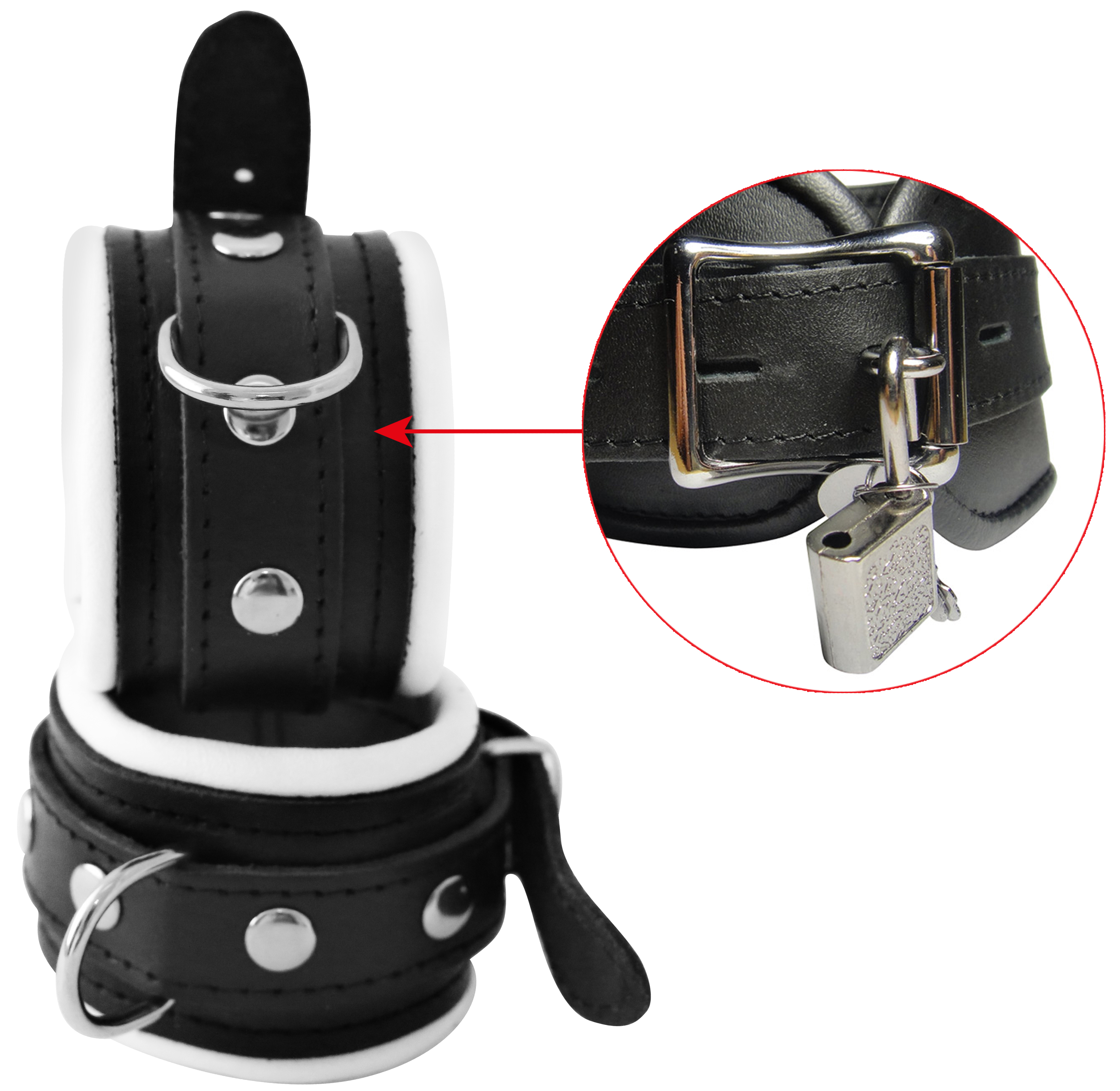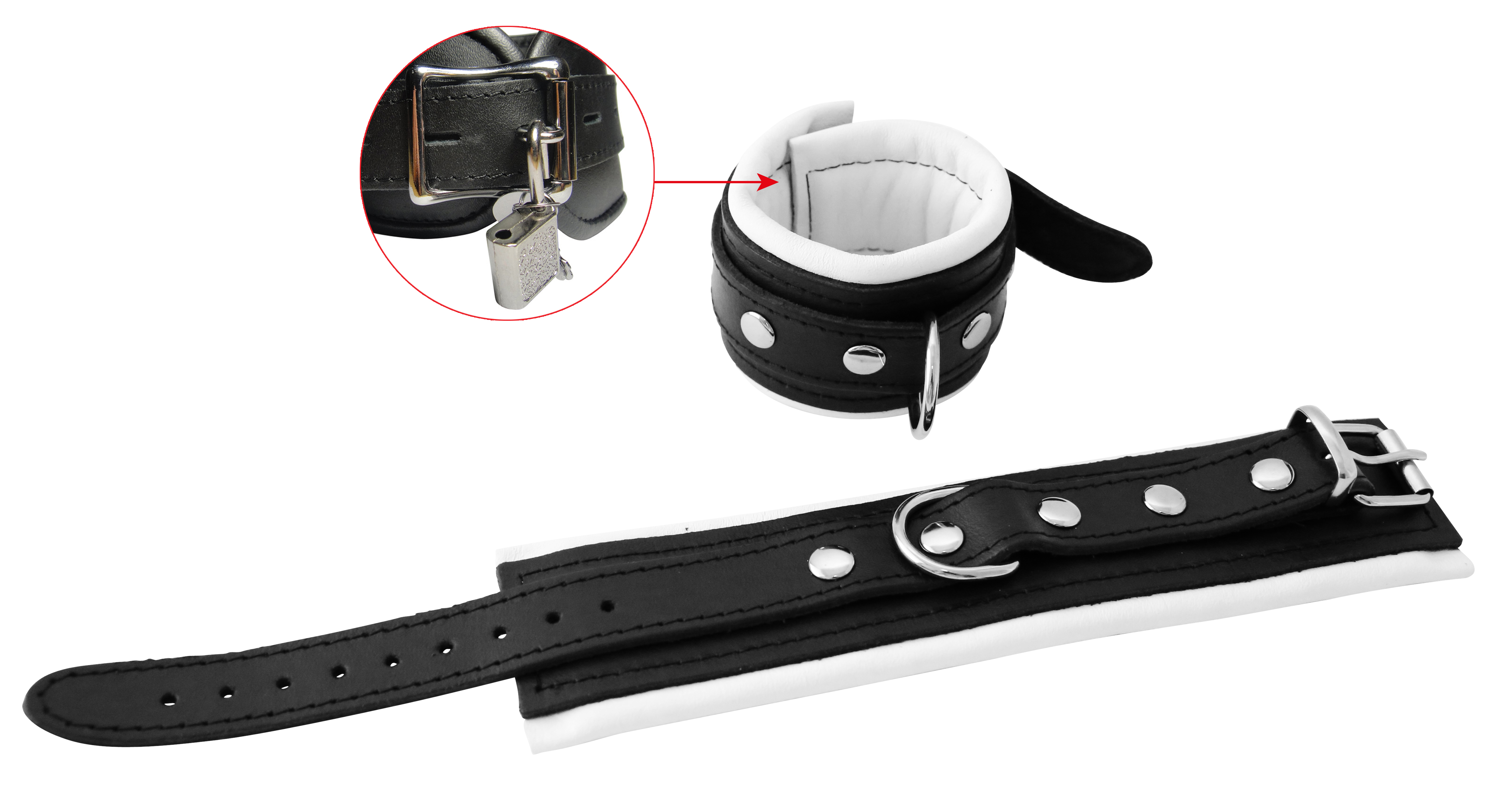 Leder Handfessel weiß ca. 5 cm breit gepolstert abschließbar.