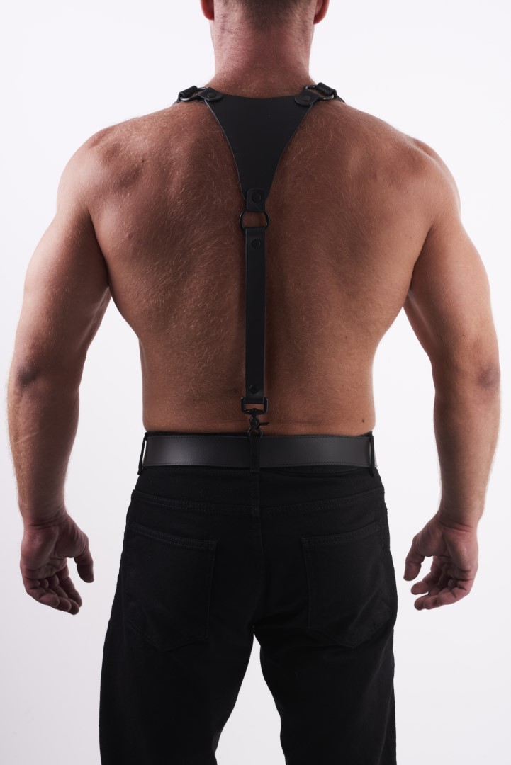 Diese tollen Leder-Hosenträger mit den schwarzen Karabinern sehen auf deiner nackten Haut mit einem Jock oder über einem T-Shirt großartig aus.