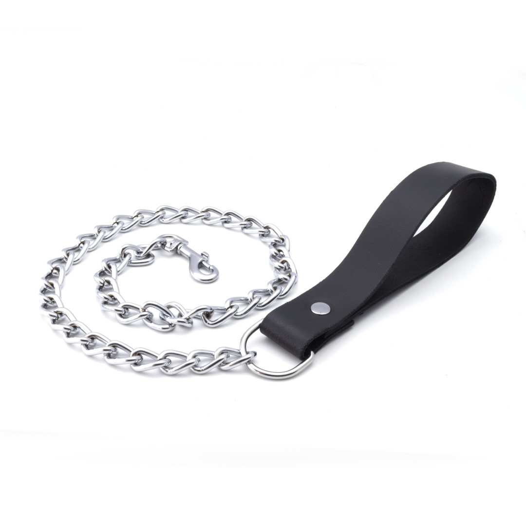 Leder Leine Mit Kette Schwarz - Führleine-Copy