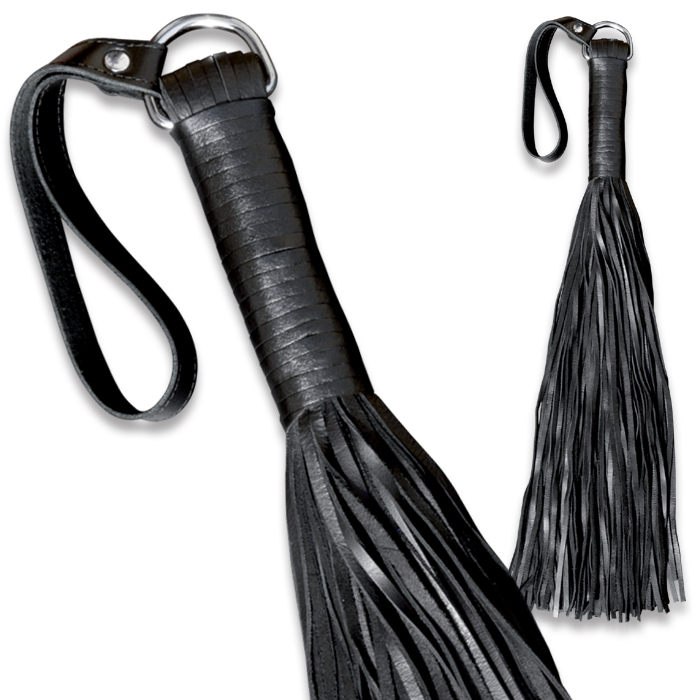 Lederpeitsche aus 100 schwarzem und softem Nappaleder-Tails