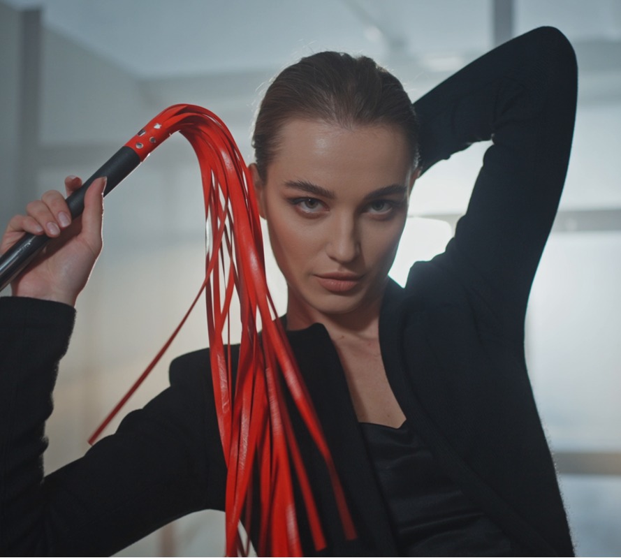 Subbie's letztes Erlebnis - Stacheldrahtpeitsche aus Leder rot-schwarz