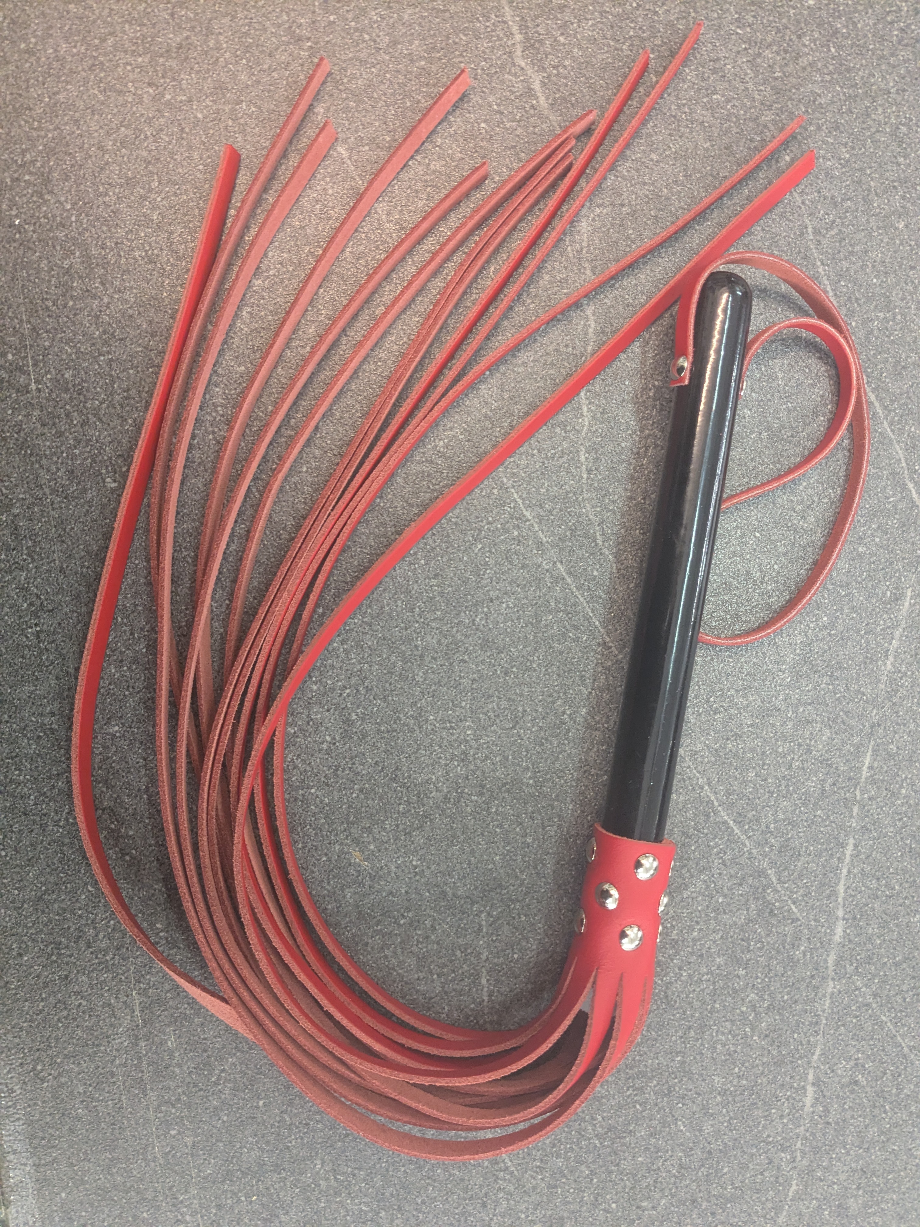 Flogger mit Loop-Striemen schwarz-rot