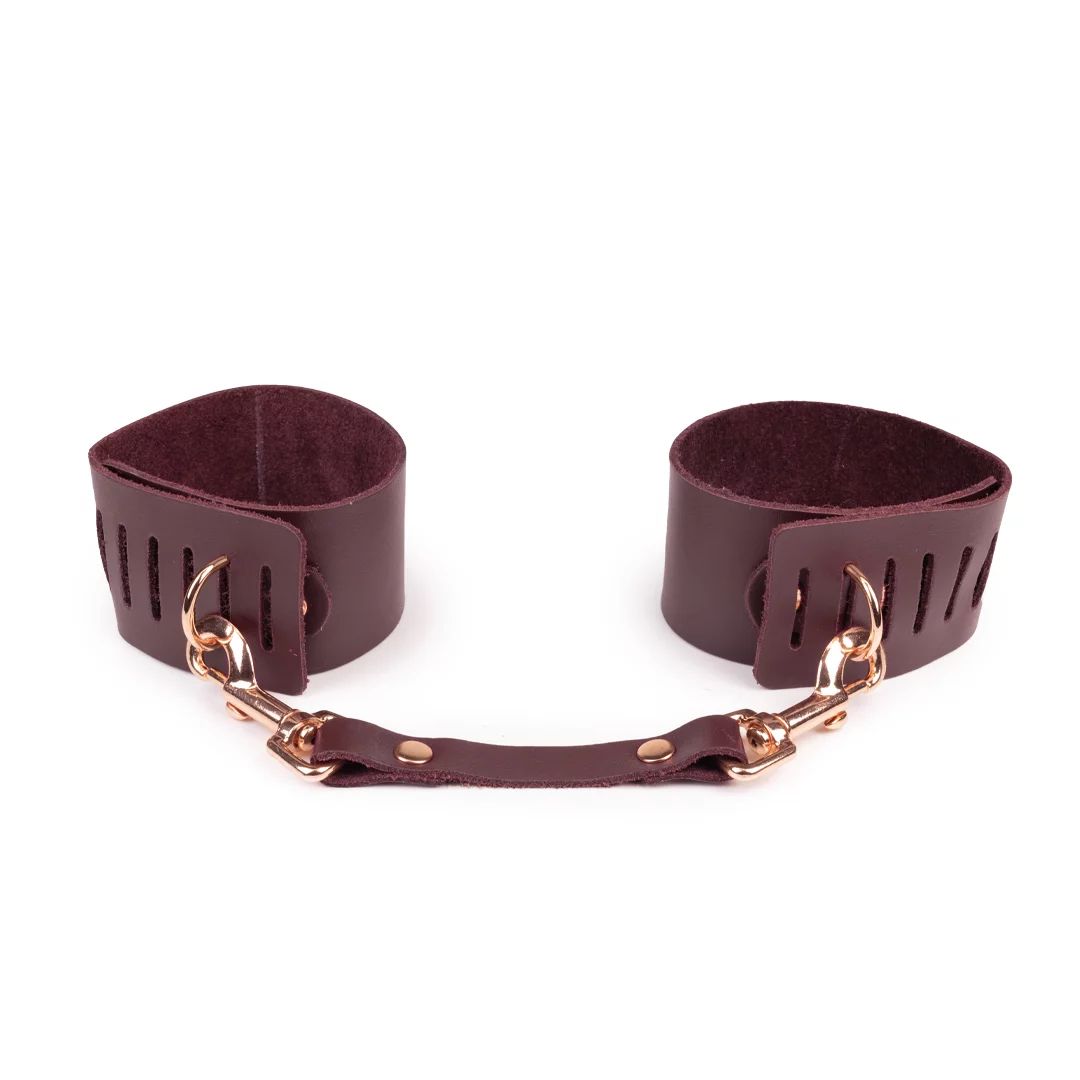 Lederhandfesseln Burgundy / Roségold