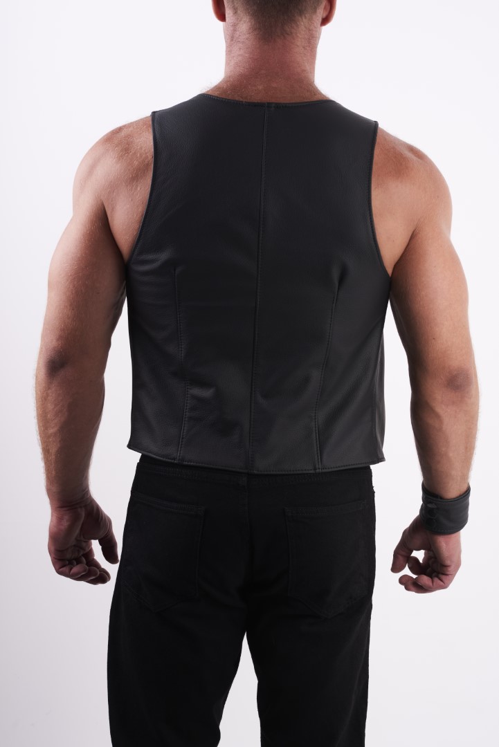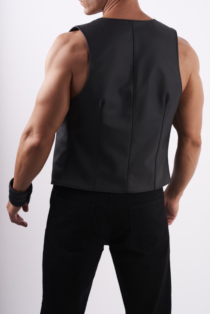 Trage Diese stilvolle und perfekt geschnittene Lederweste und stelle Deine Brustmuskeln zur Schau!