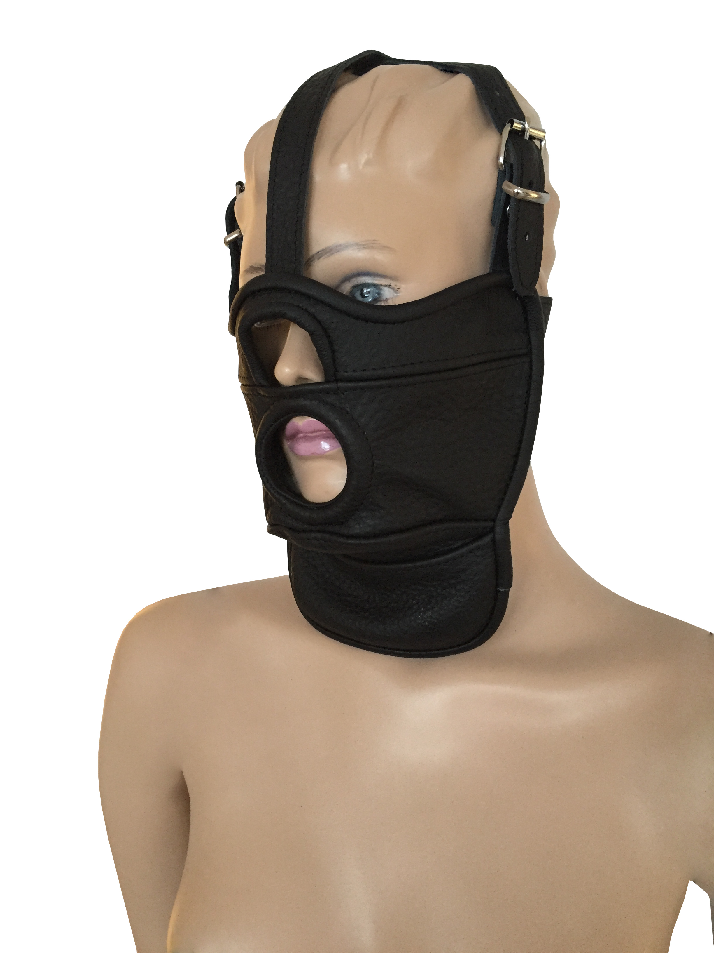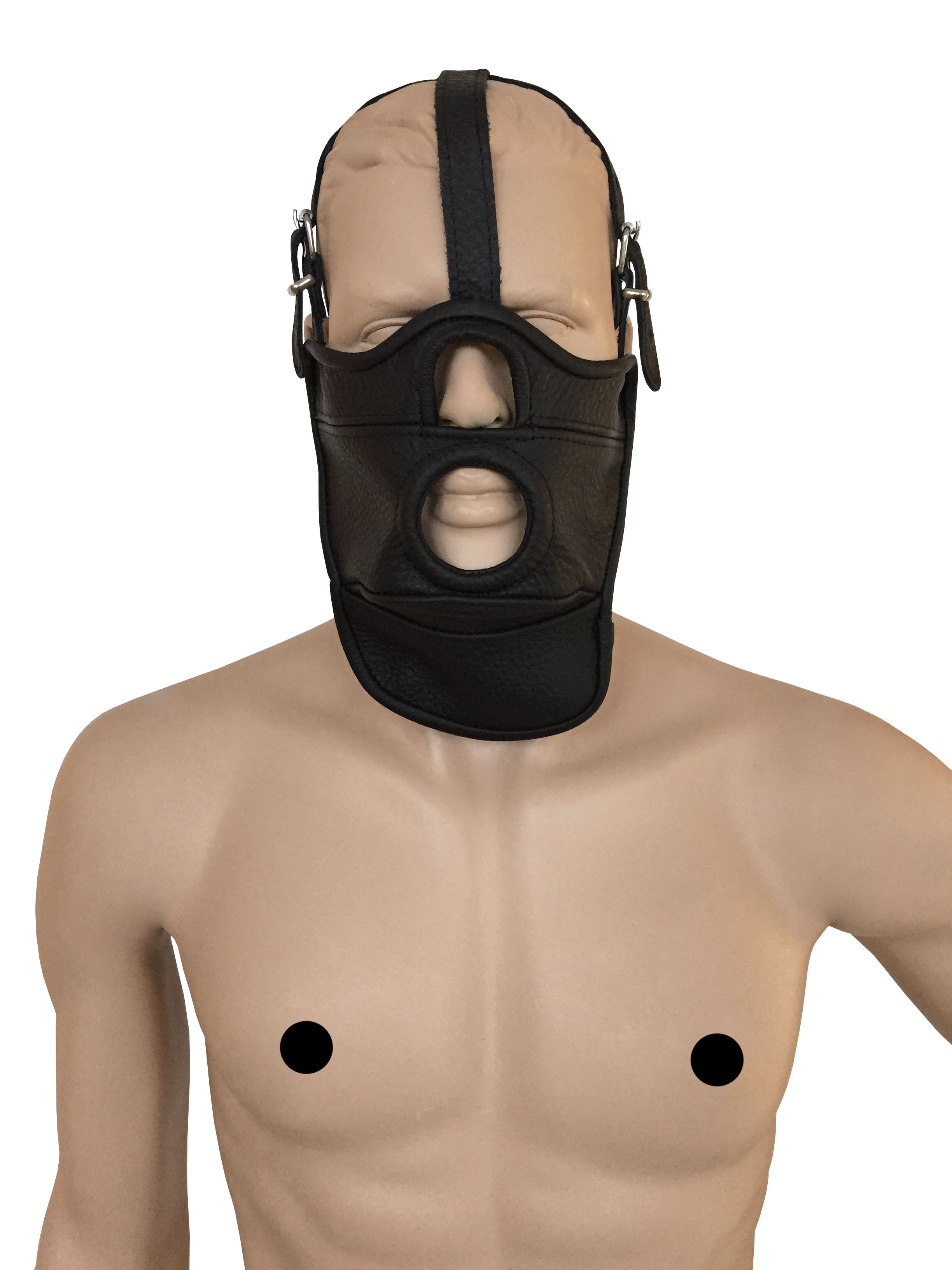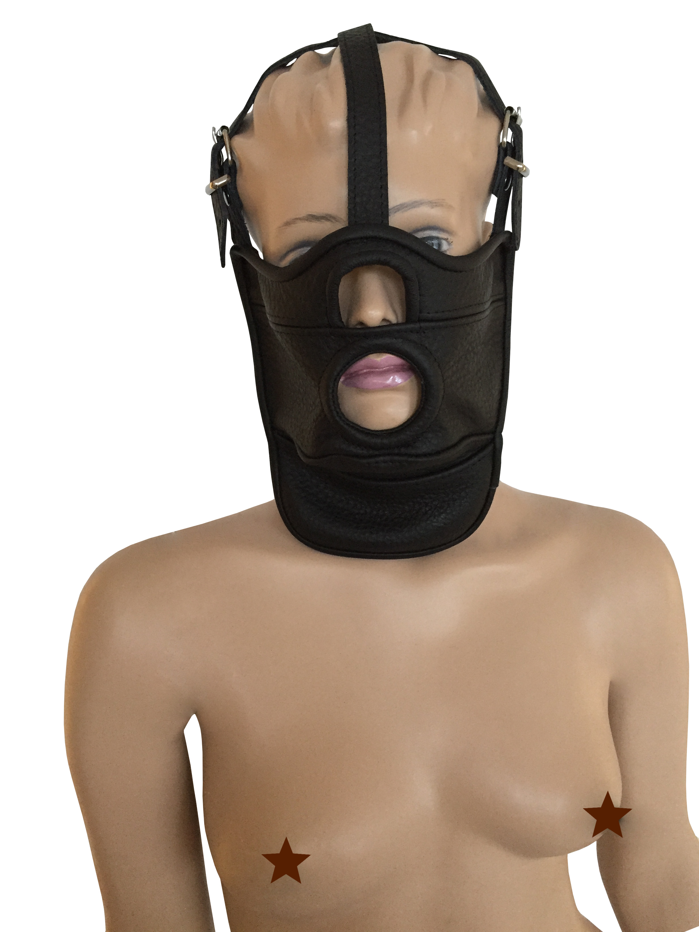 Kappe aus Leder mit abnehmbarer Augen- und Mundklappe