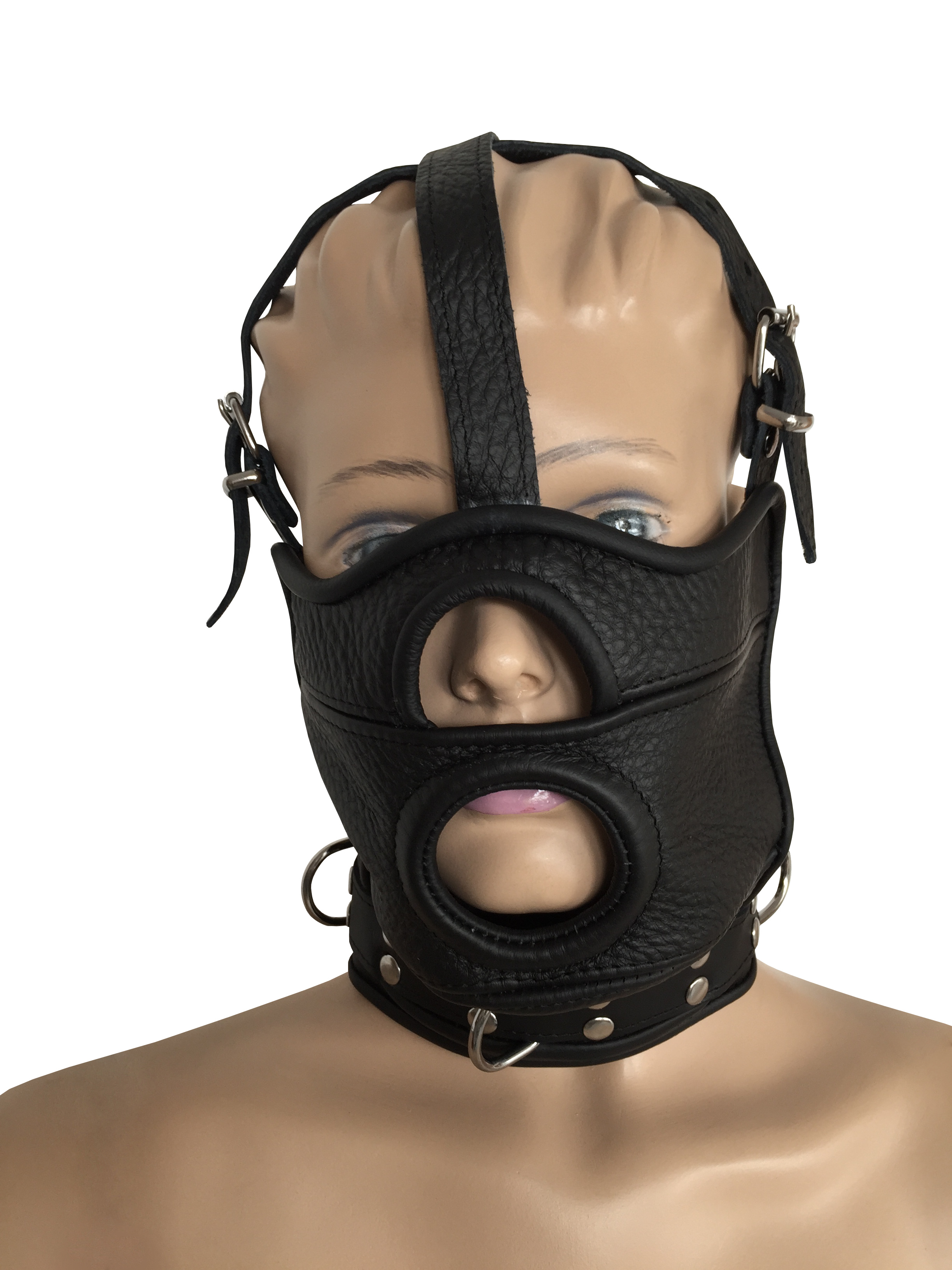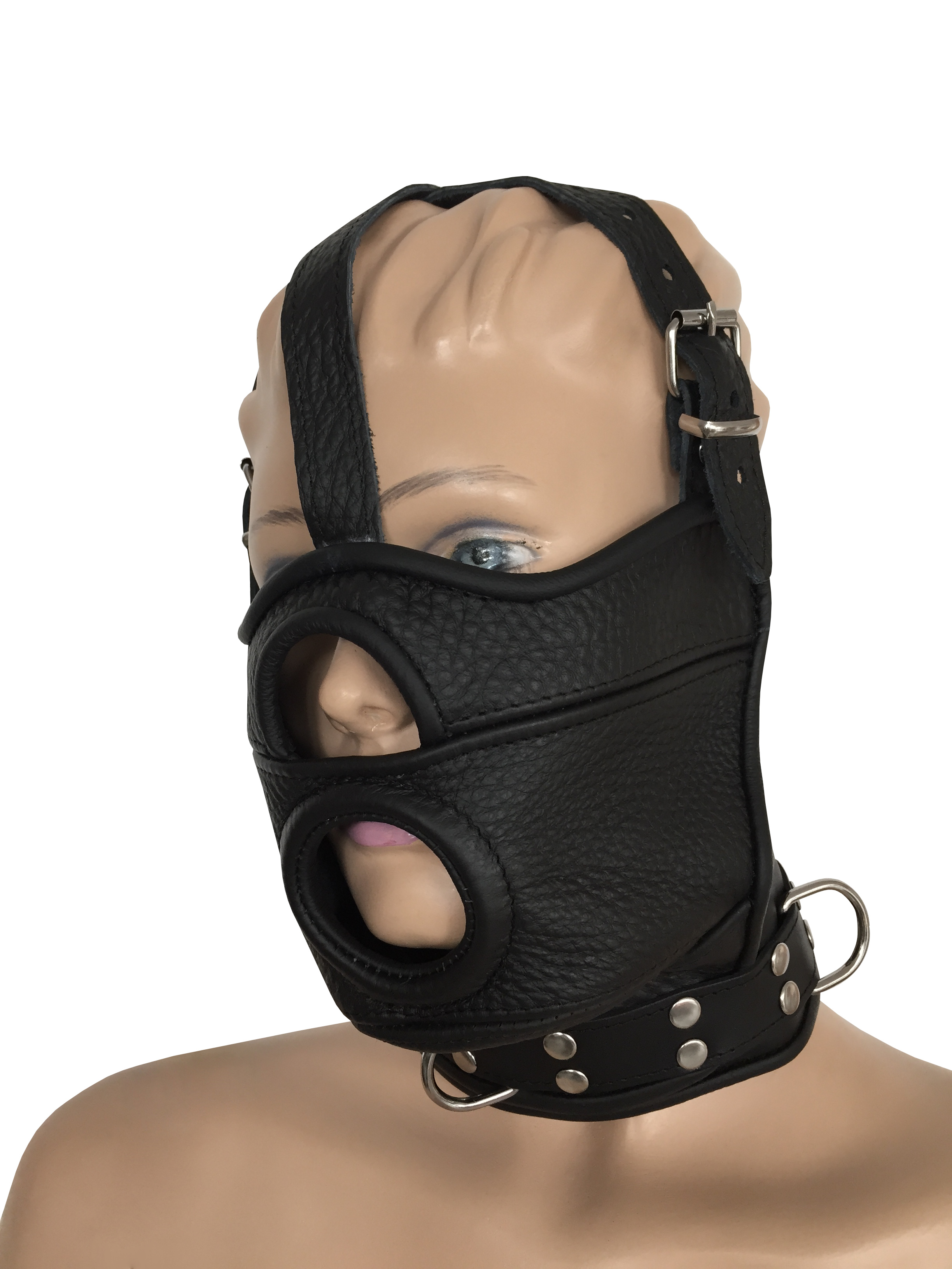 Maske aus weichem Leder mit Mundöffnung.