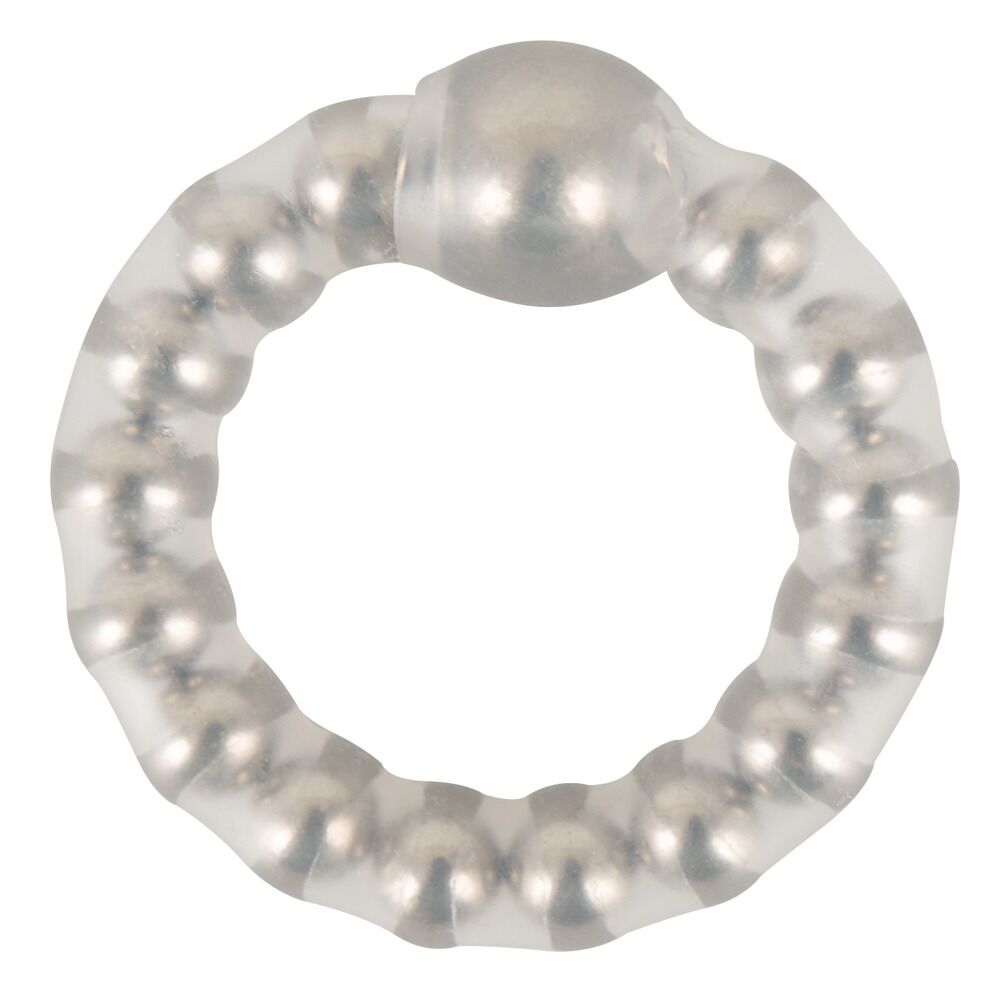 Penisring mit massierenden, stimulierenden Metallkugeln unter der transparenten Silikon-Hülle. Ø 3 cm (dehnbar).