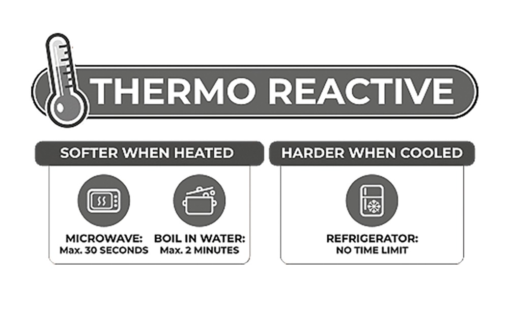 Außerdem reagiert das Material auf Wärme (wird dann weicher) und Kälte (wird härter).