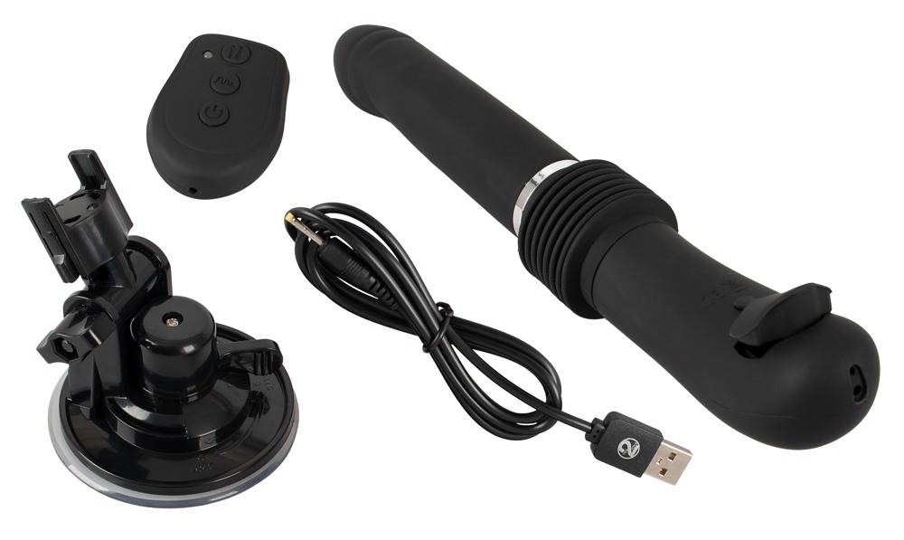 Stoßvibrator RC Fucking Machine 2.0 von You2Toys mit abnehmbarem, im Winkel verstellbarem Saugfuß, der auf jeder glatten Oberfläche fest und sicher haftet für freihändiges Vergnügen.