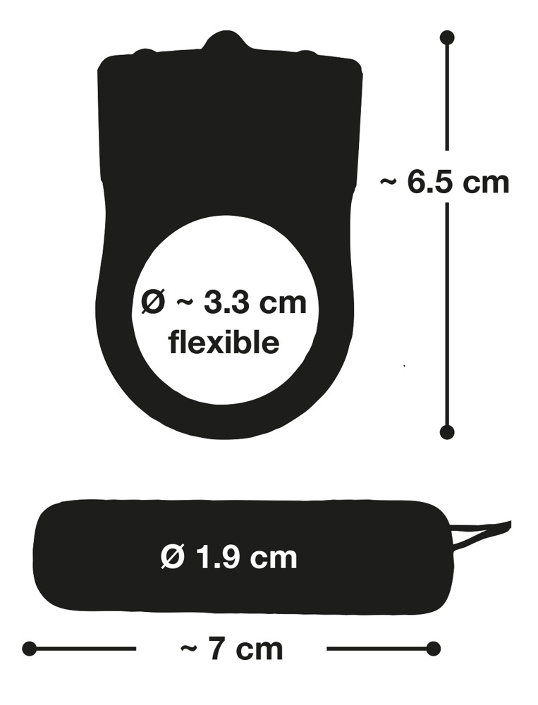 Gesamtlänge 6,5 cm, Ø 3,3 cm (dehnbar). ABS mit PU-Beschichtung, Silikon mit PU-Beschichtung.