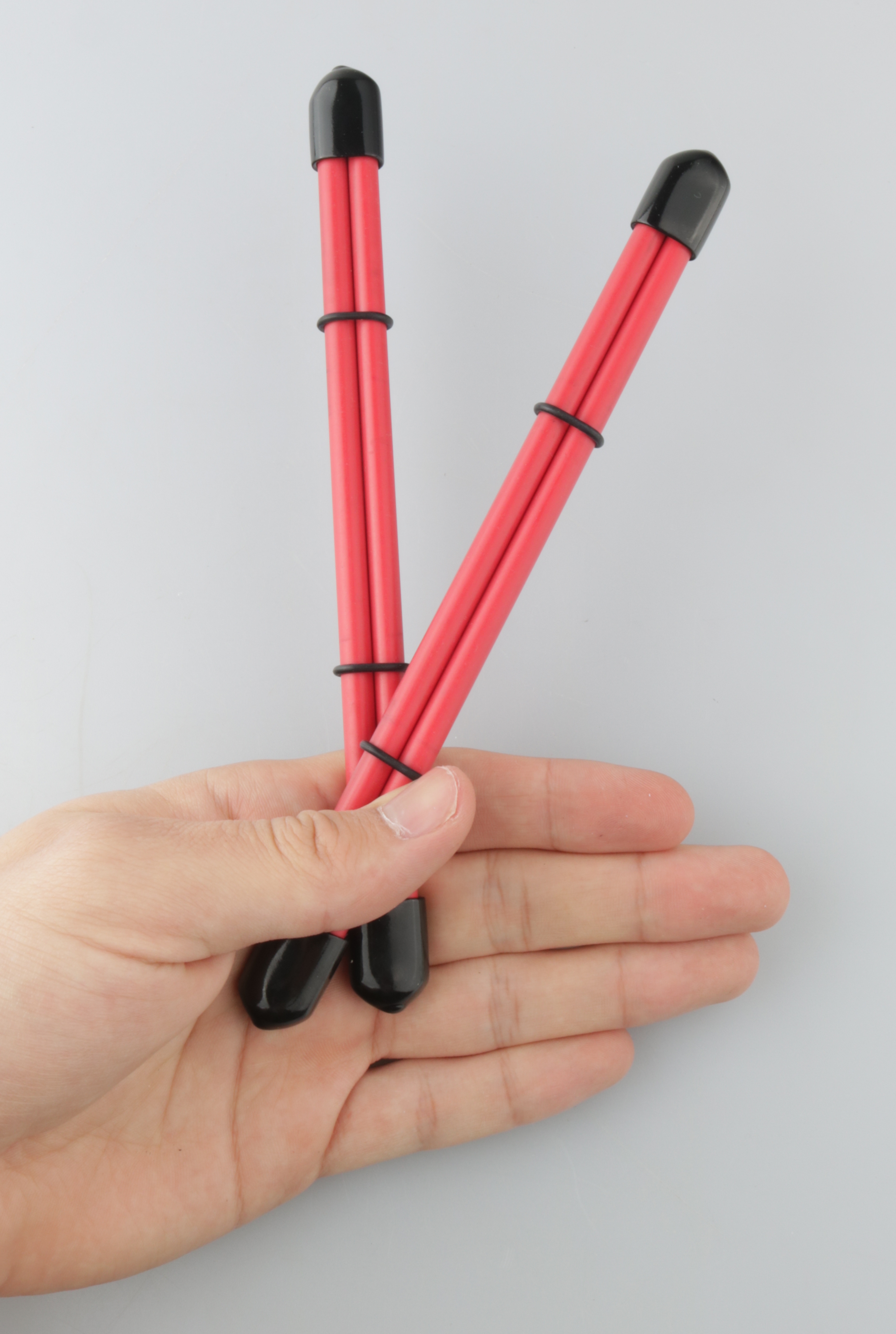Mit Gummiendkappen und Gummiringen. Mit den Ringen wird die Intenssität reguliert.