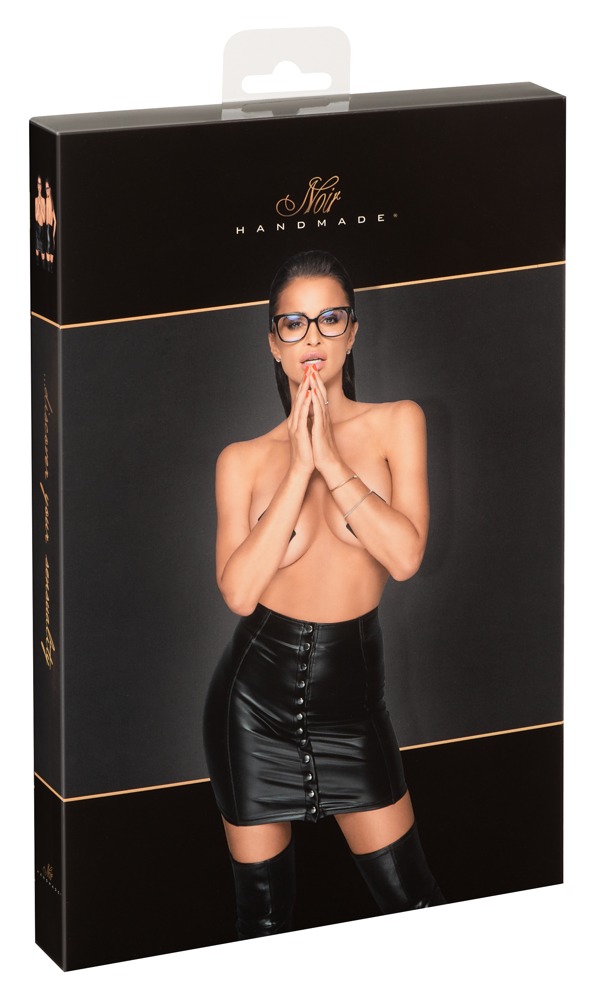 Knapper Minirock im schwarzen, elastischen Powerwetlook. Vorne mit durchgehender Druckknopfleiste, die sich ruckzuck öffnen lässt.