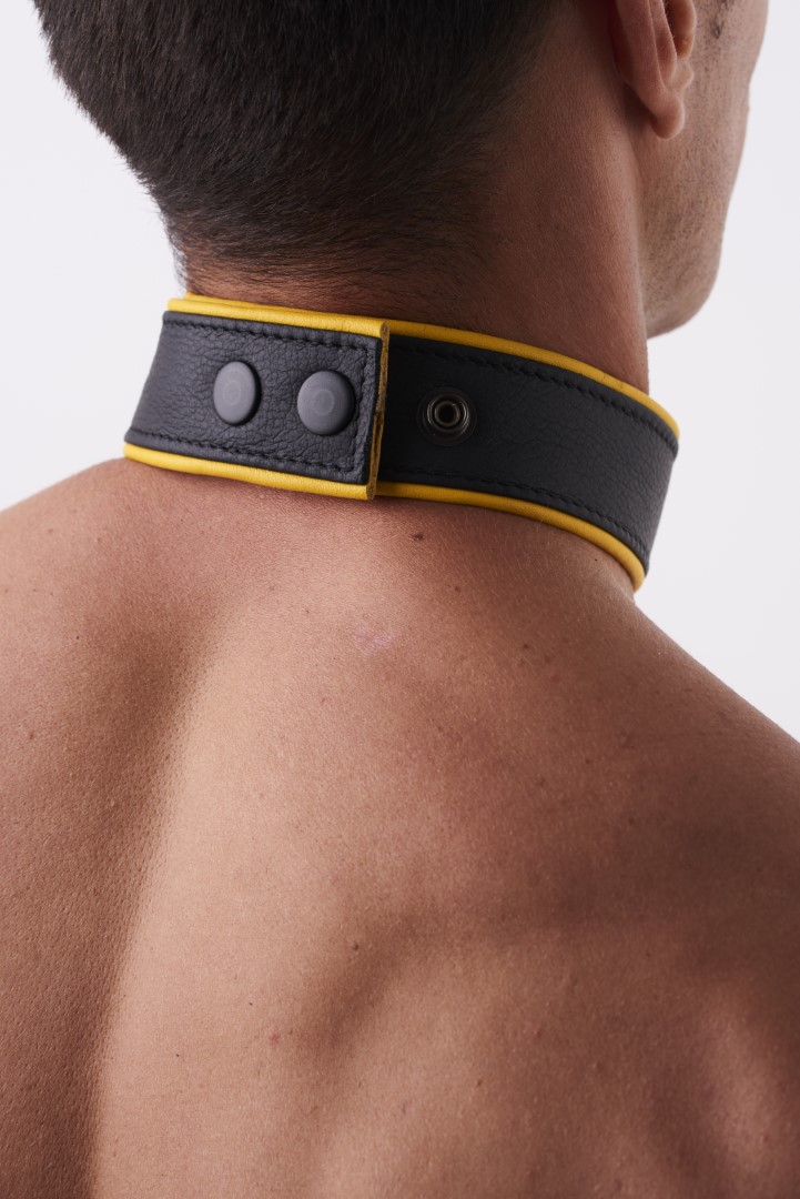 Soft Leder Halsband Schwarz/Gelb