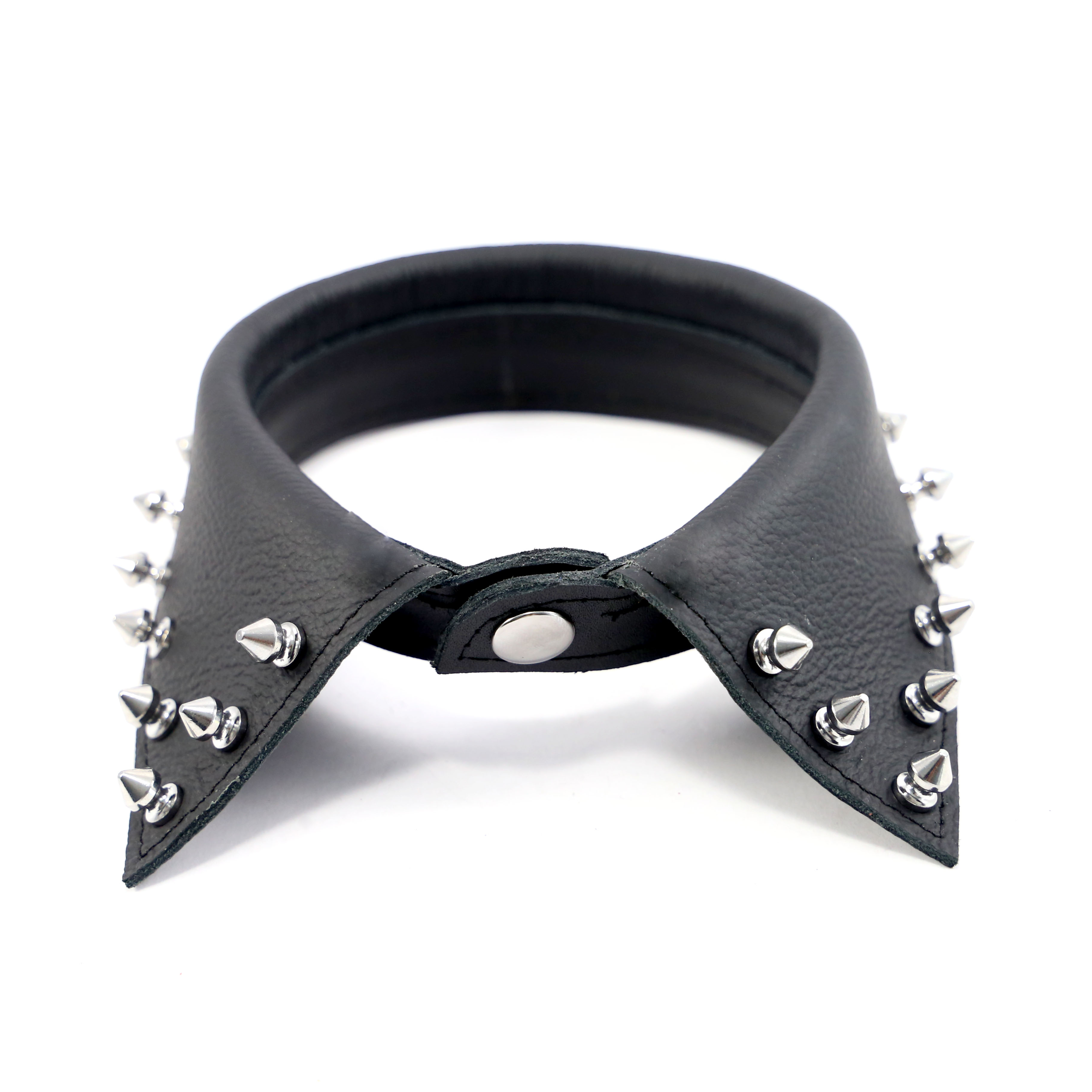Steh Kragen aus Leder it Zier-Kegel-Nieten (Verschluss vorne)