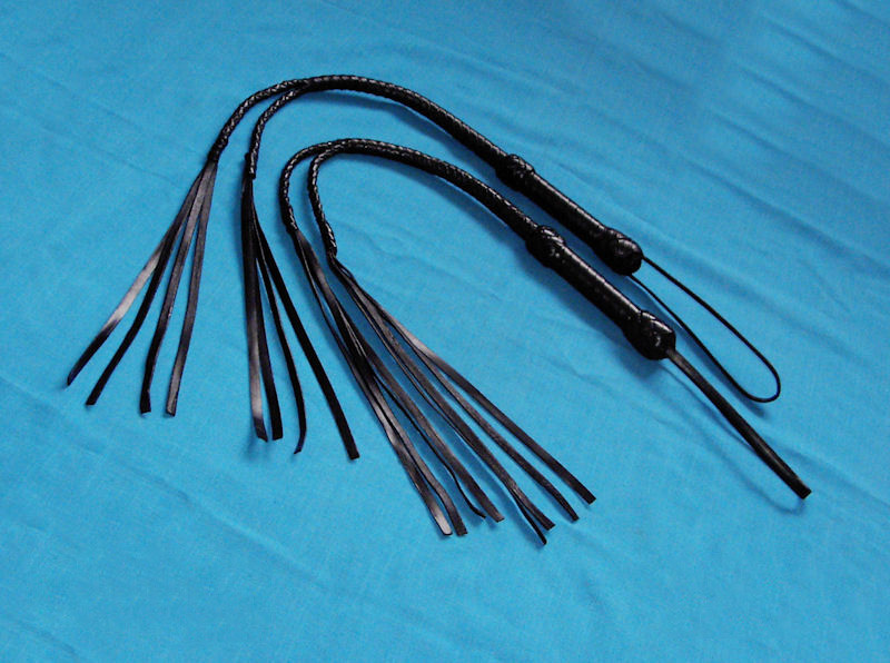 Die Peitsche splittet sich in zwei Abschnitten auf - danach in vier Striemen.