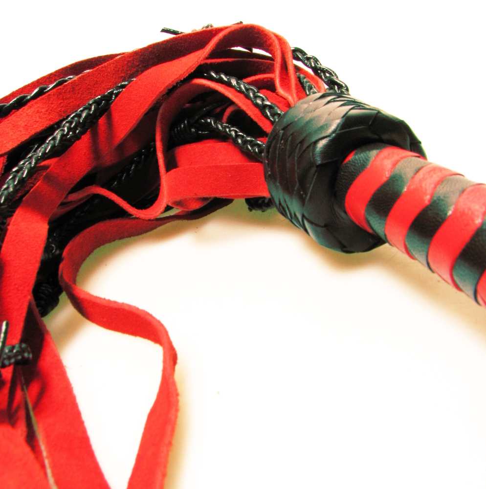 schwarz/roter Rundleder Flogger mit Aufhänger